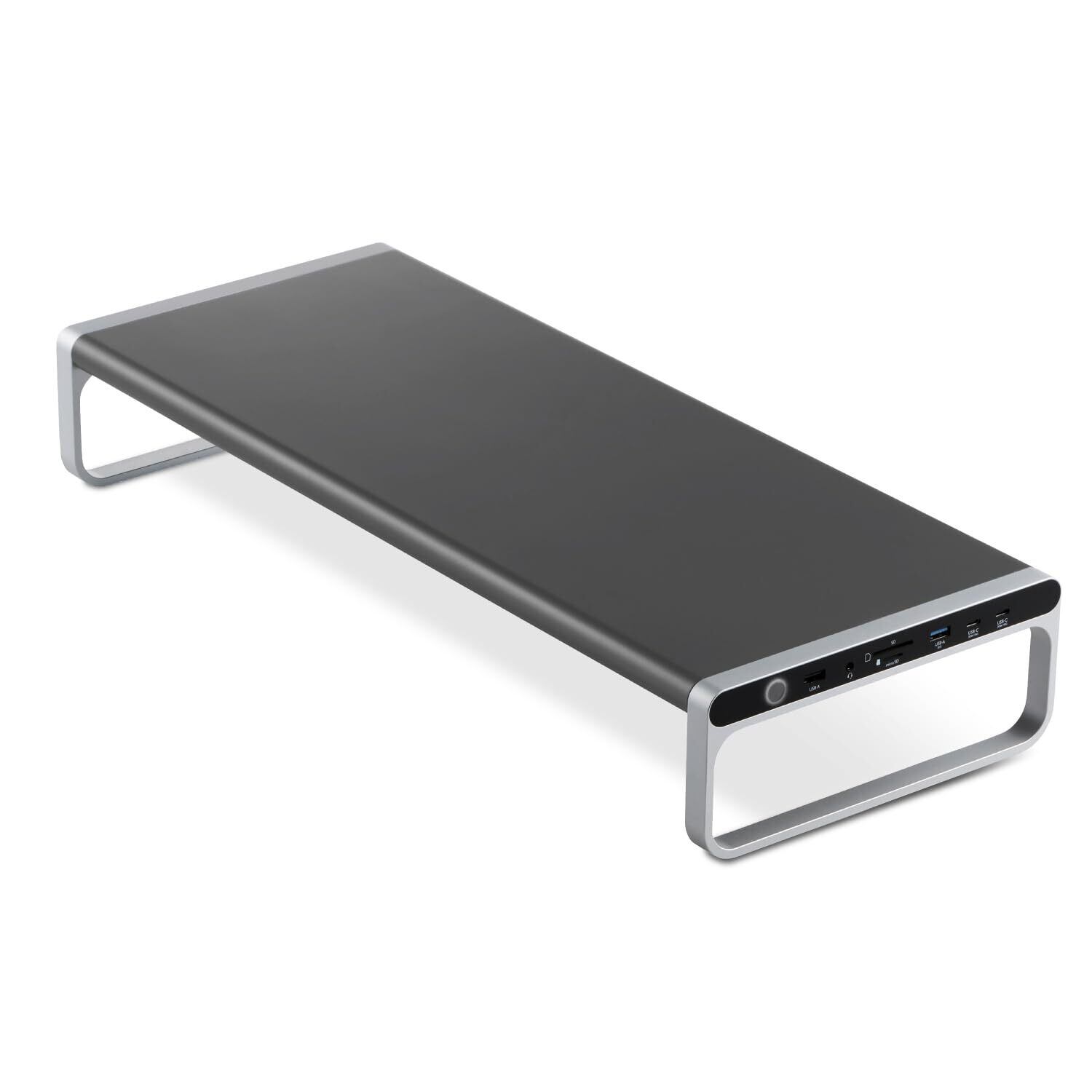 ケーブル1本でパソコンへ接続し、デバイスの充電・高速データ転送・映像の投影ができる12in1のモニタースタンド型ドッキングステーションです。モニタースタンドに直接ケーブルを挿せるので、周辺機器をこの1台に。デスク周りで場所を取りません。
