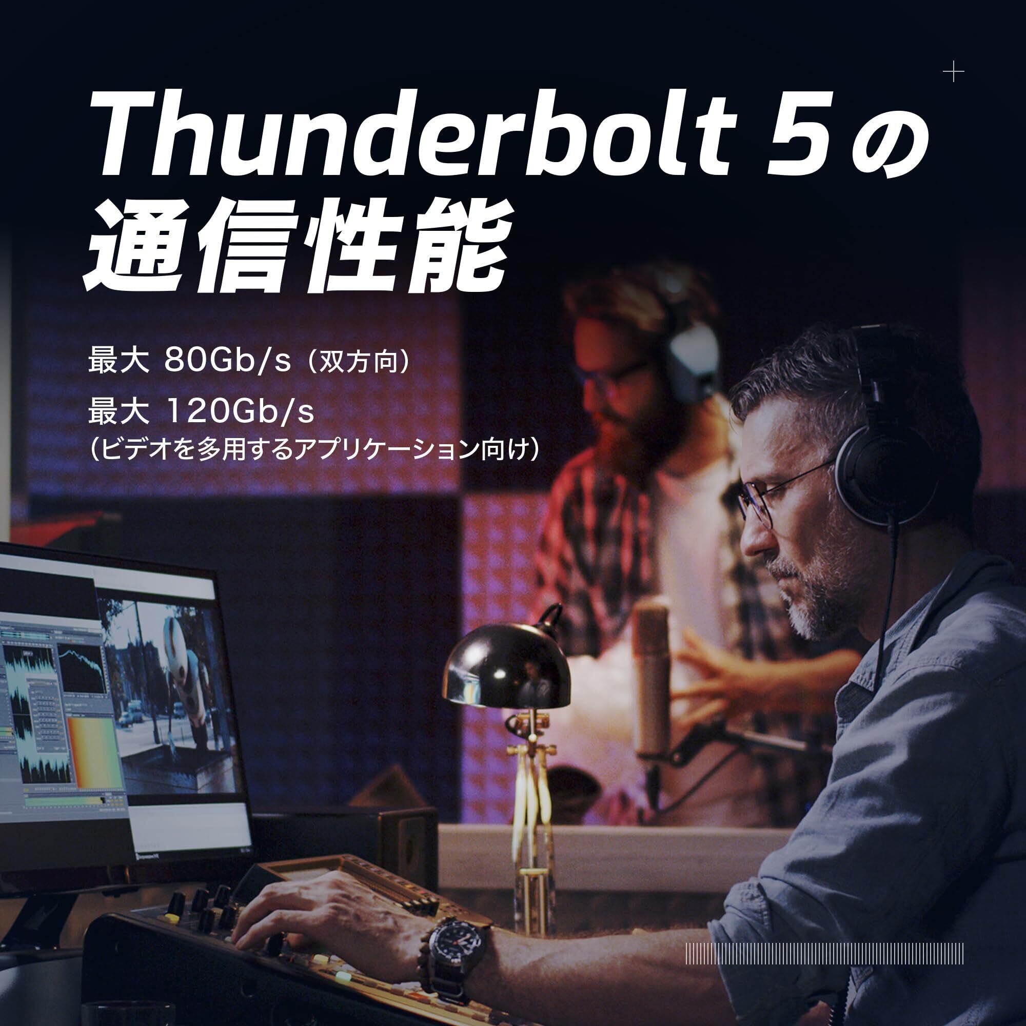 1台ですべてに対応:Thunderbolt 5/4/3、USB4、USB-Cの、既存の機器や最新の機器を活用できます。