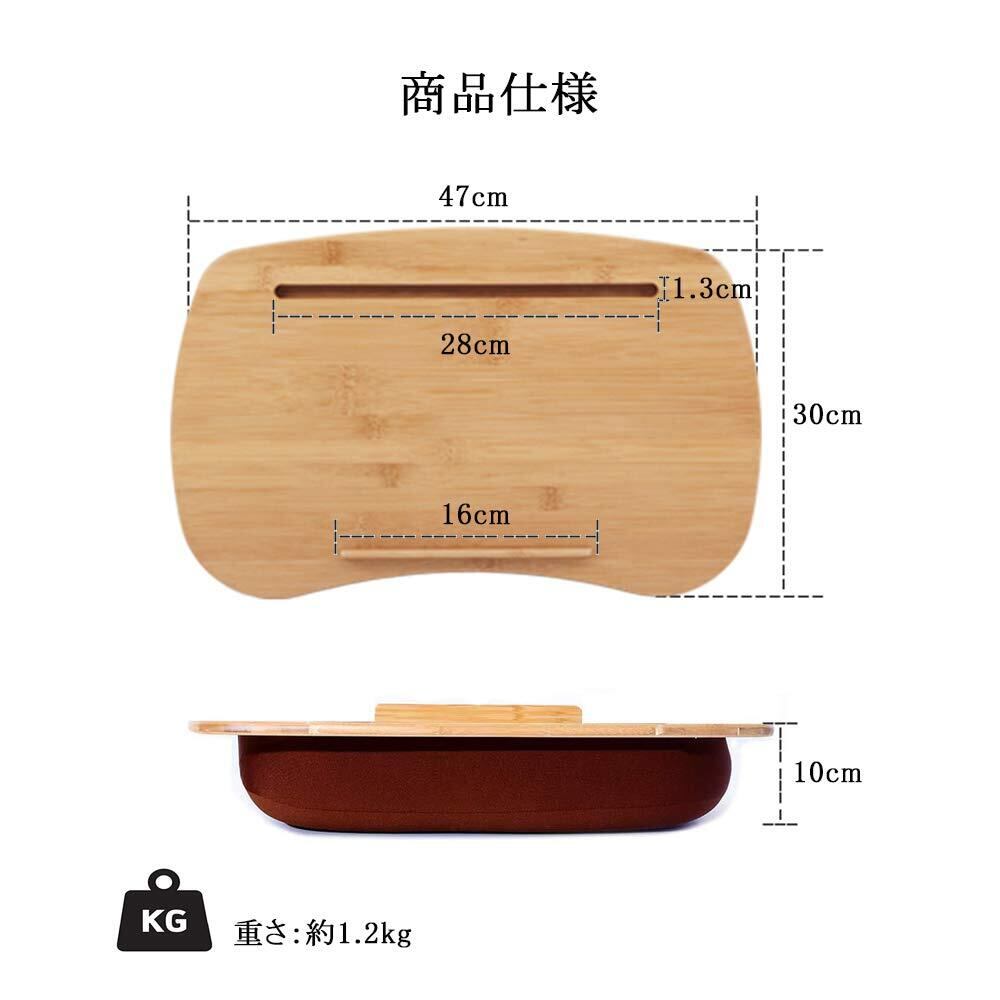 SUMISKY 膝上テーブル ラップデスク ノートパソコンデスク 枕 クッション 天然竹製 タブレット ラップトップテーブル (47x30cm)