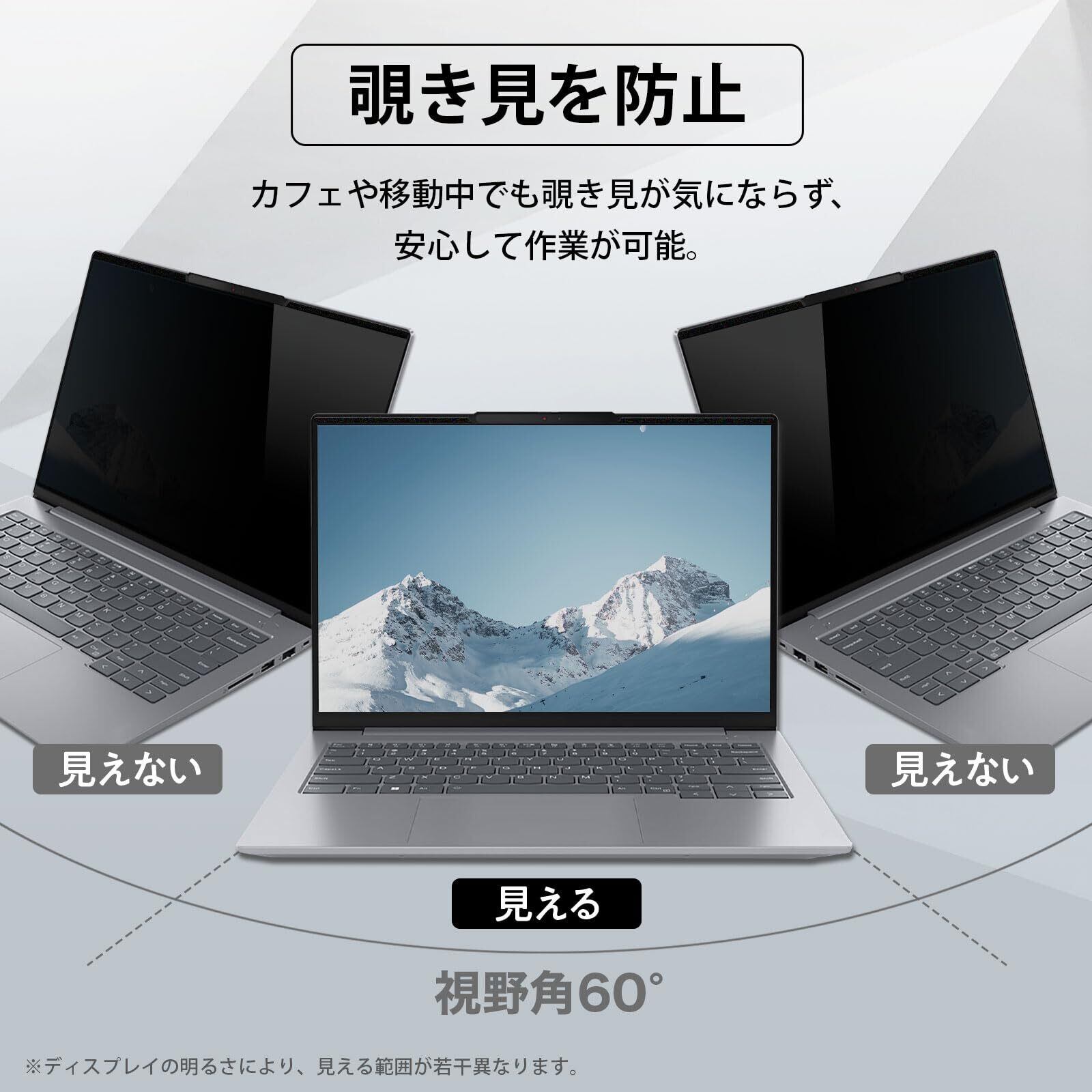 【ほど良い透過率】透過率は72%なので、ずっと装着していても違和感を覚えずにお使いいただくことができます。 【ビジネスシーンで活躍】当フィルターは新幹線、飛行機、カフェ、職場など仕事でパソコンを使うシーンで重宝されるため、法人のお客様から多数ご利用をいただいています。 ※非対応機種:レノボ Think Pad シリーズの一部機種 (Think Pad X390, Yoga,X1 Carbonなど)では、フィルター装着時、スリープセンサーの誤作動によって画面が映らなくなる場合があるのでご注意ください。その場合は、マグネットの位置をセンサーからずらして調整することによって改善される可能性があります。