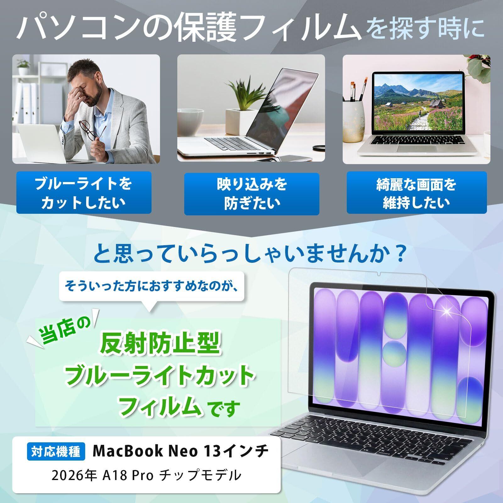 【2022最新】PCフィルター専門工房 MacBook Neo 13インチ 2026 A18 Proチップ 対応 フィルム ブルーライトカットフィルム 反射低減 指紋防止 抗菌 保護フィルム
