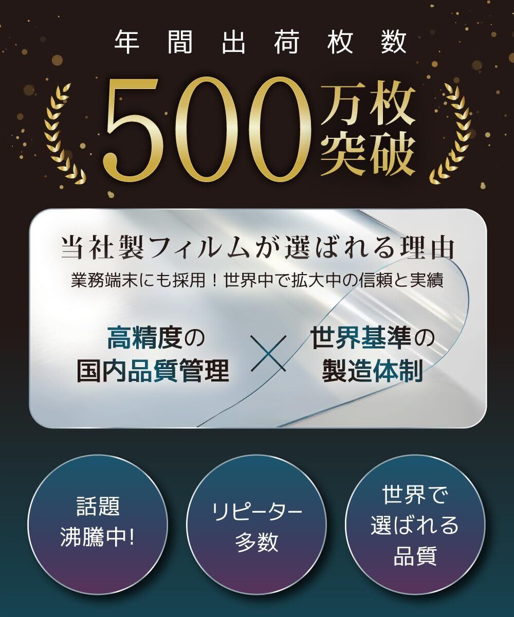 【気泡軽減】 ホコリの混入は大敵です。 大きなサイズのフィルムは特に気泡が入りやすく貼り付け難易度が増す傾向にありますが、本フィルムでは特殊シリコン樹脂を使用しており自然にエアが抜けて液晶画面に気泡が残りにくい特性を兼ね備えています。 説明書を見ながら貼れば初めての人でも大きな失敗もなくキレイに貼れるアクセサリーも付属しています。