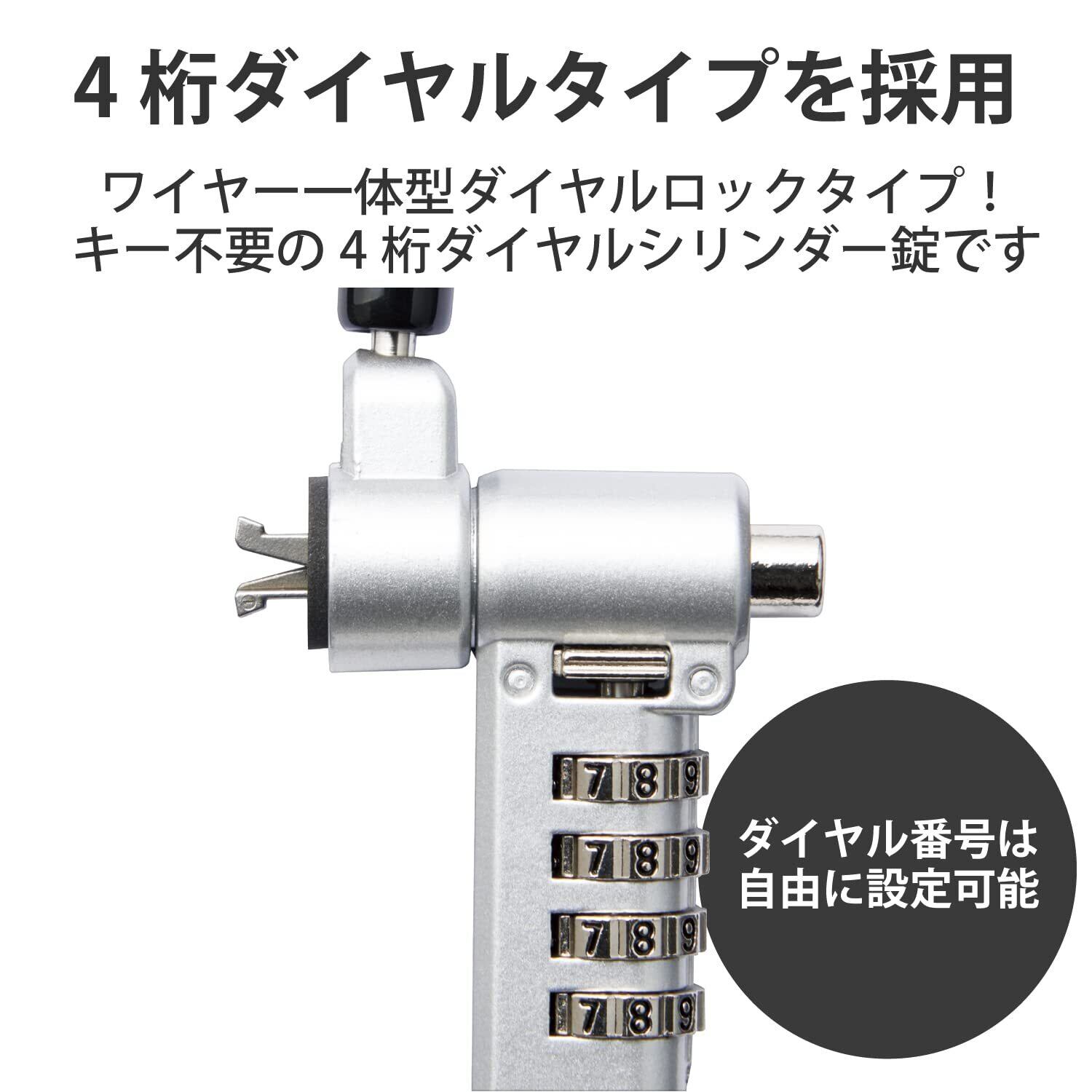 キー不要の4桁ダイヤルタイプ!薄型ノートパソコン・液晶モニタ・タブレットなどを盗難から守るマルチスロット対応のセキュリティワイヤーロックです。