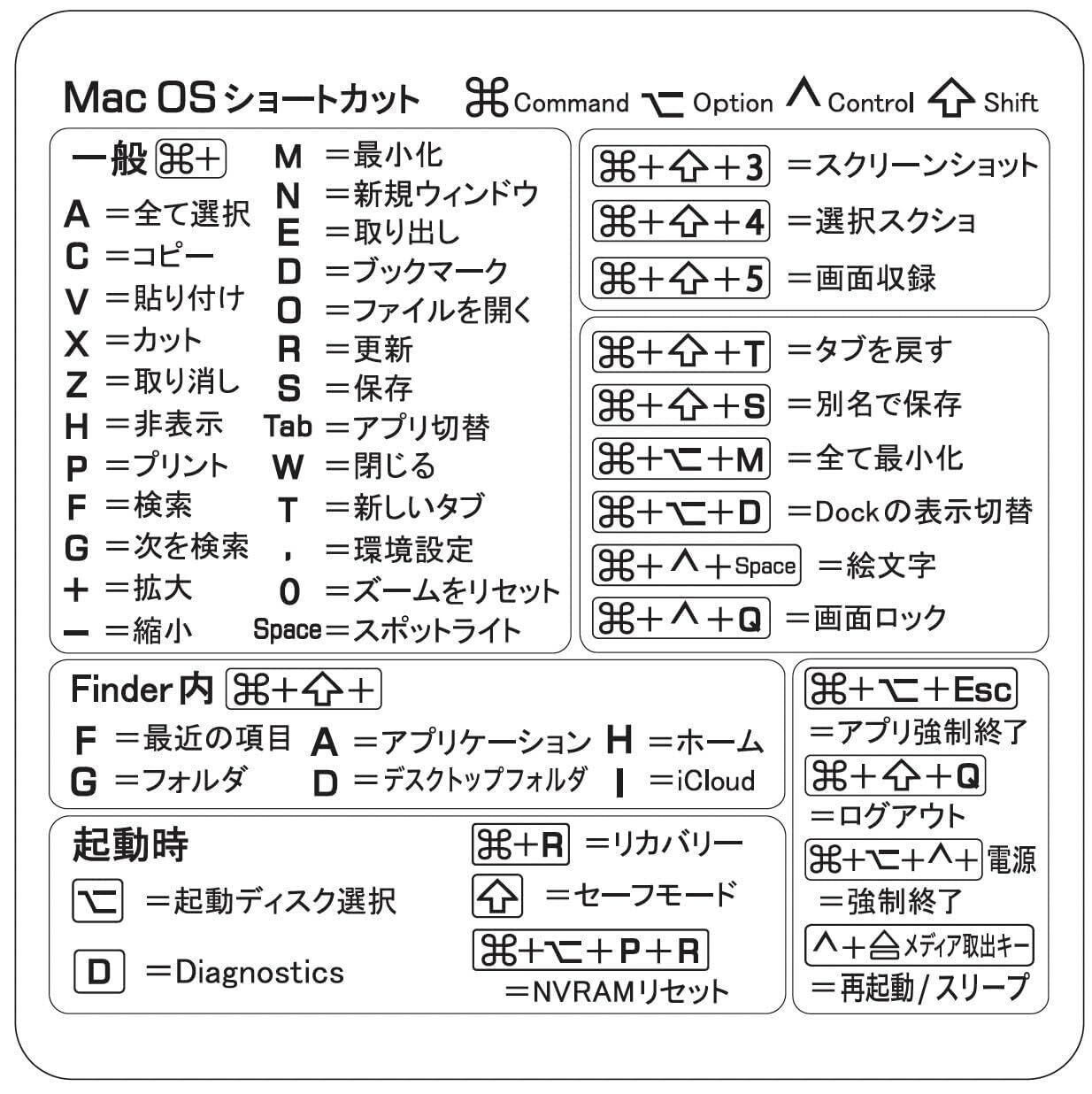 【新着商品】【ムイビエン】 Mac ショートカット 早見表 ステッカー 8×8cm|作業効率アップ MacBook デスクトップ対応|よく使う操作を厳選した見やすいデザイン|初心者〜中級者向け 便利アクセサリー 日本語 ホワイト (Mac1枚)