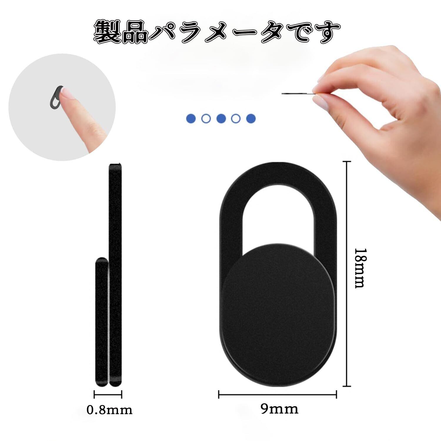 【商品仕様】ウェブカメラカバー*6個セット。素材:ABSプラスチック、サイズ:18*9*0.8mm