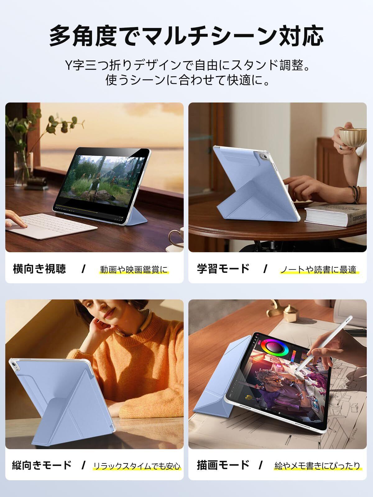 【磁気吸着&360°全面保護】 背面に強力マグネットを内蔵し、ケースが本体にしっかり密着。カバーの開閉で自動スリープ/ウェイクに対応。四隅強化に加え、360°全周を包み込むフルカバー設計で、落下衝撃、摩擦、埃や指紋からもしっかり守ります。