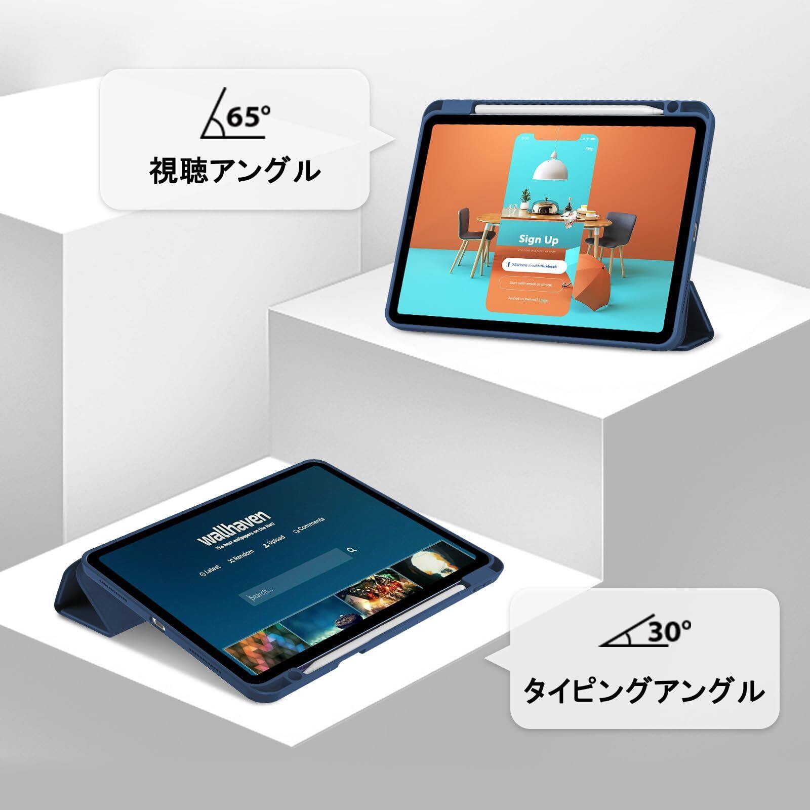 【2022最新】ProCase iPad Air 11インチ ケース M4(2026) / M3 (2025) / M2 (2024) / iPad Air5 (2022) / Air4 (2020) 10.9インチ 透明 クリアカバー ペン収納 耐衝撃 三つ折り スタンド スマートカバー -ネイビー