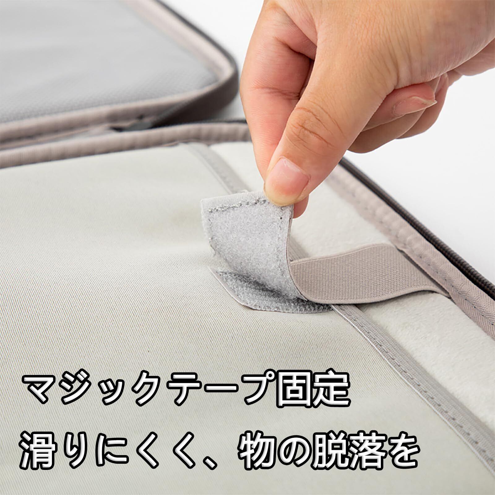 【多機能収納】区画設計、内部空間を十分に利用し、iPadを収納できるだけでなく、複数の仕切りを備え、タブレット、充電器、データケーブル、イヤホン、ノートなどを簡単に収納し、品物が整然として秩序正しく、必要な品物を迅速に取りやすくする。