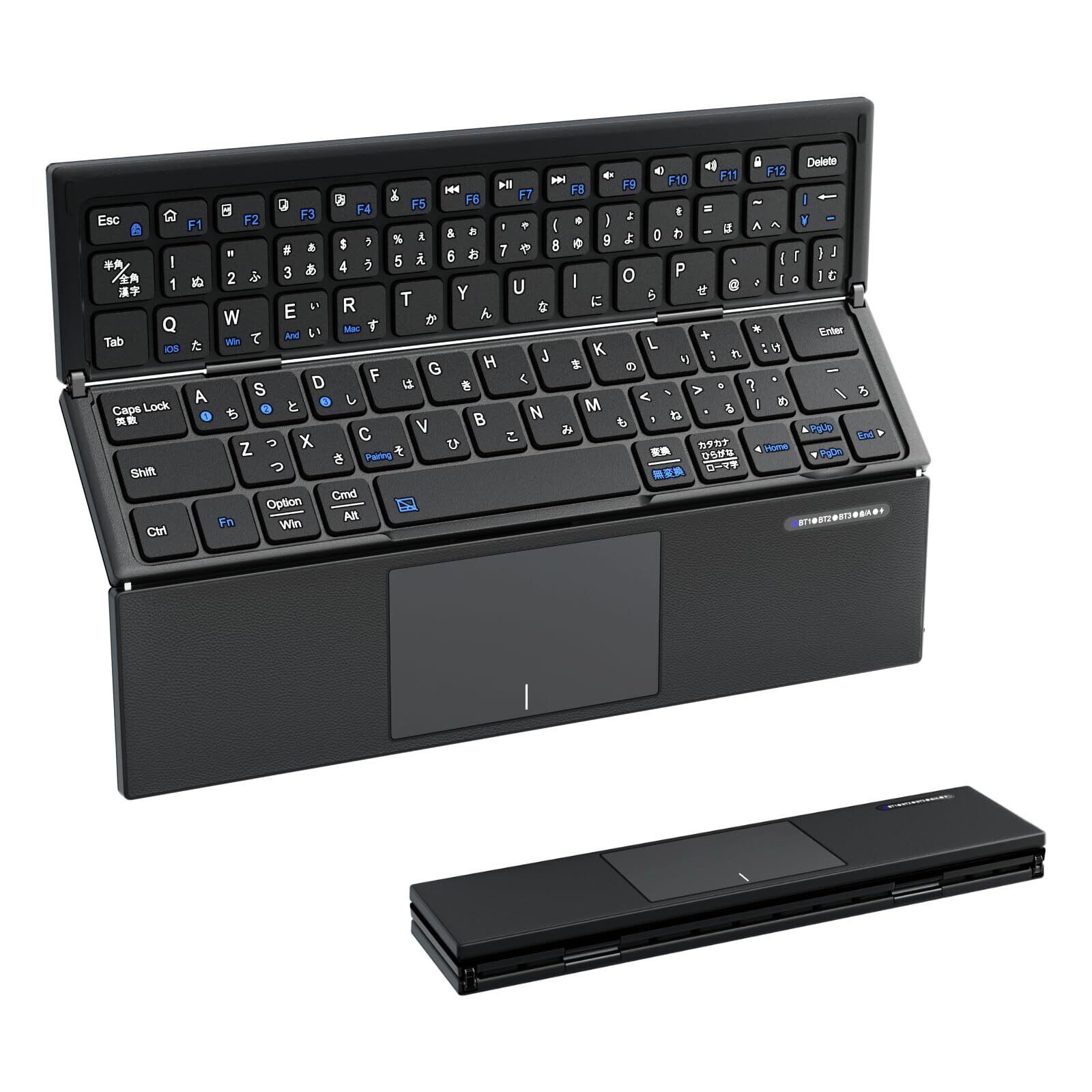 【在庫処分】Ewin キーボード 折りたたみ式 ワイヤレス bluetooth接続 JIS日本語配列 ipad パソコン タブレット スマホ マチルペアリング 3台同時接続 Windows/iOS/Android/Mac対応 タッチパット付き type-c充電式 コンパクト 快適な打鍵感 おしゃれ 軽量 薄型 ビジネス用 旅行 ブラック