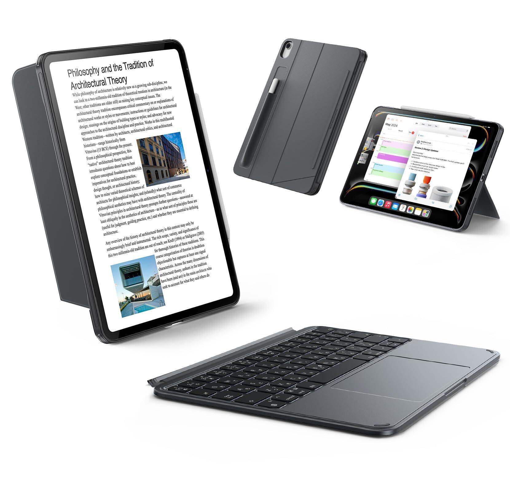 ESR Shift iPad 第11世代(A16, 2025)/第10世代用キーボード付きケース、マグネット脱着式キーボード、縦向き/横向きモード対応、大きいトラックパッド、バックライトキー、ダークグレー