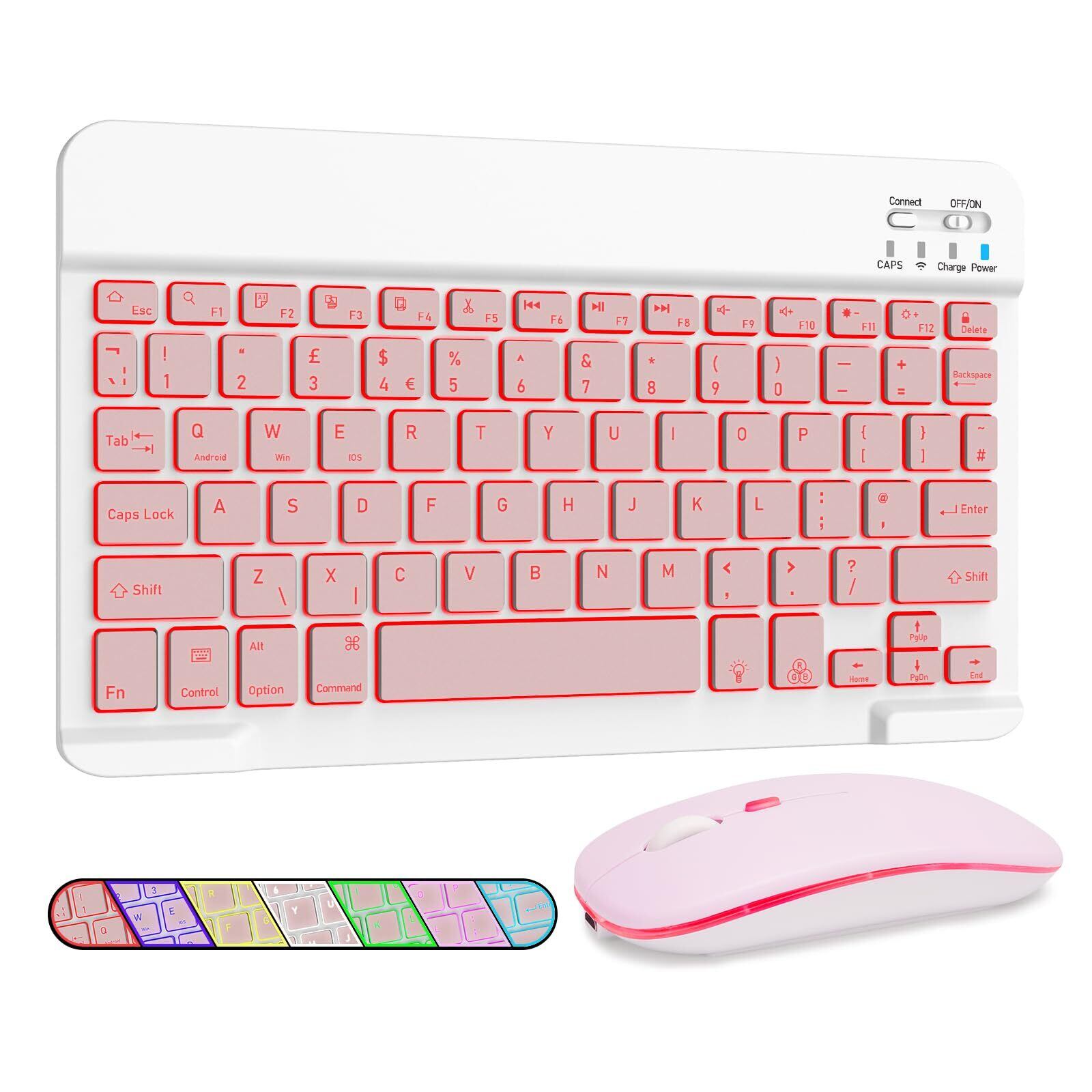 LAMA タブレットキーボード Bluetooth5.4 キーボードワイヤレス マウス付き 7色バックライト付きiPad/iOS/Android/Windowsに適用 薄型 コンパクト 軽量 ピンク