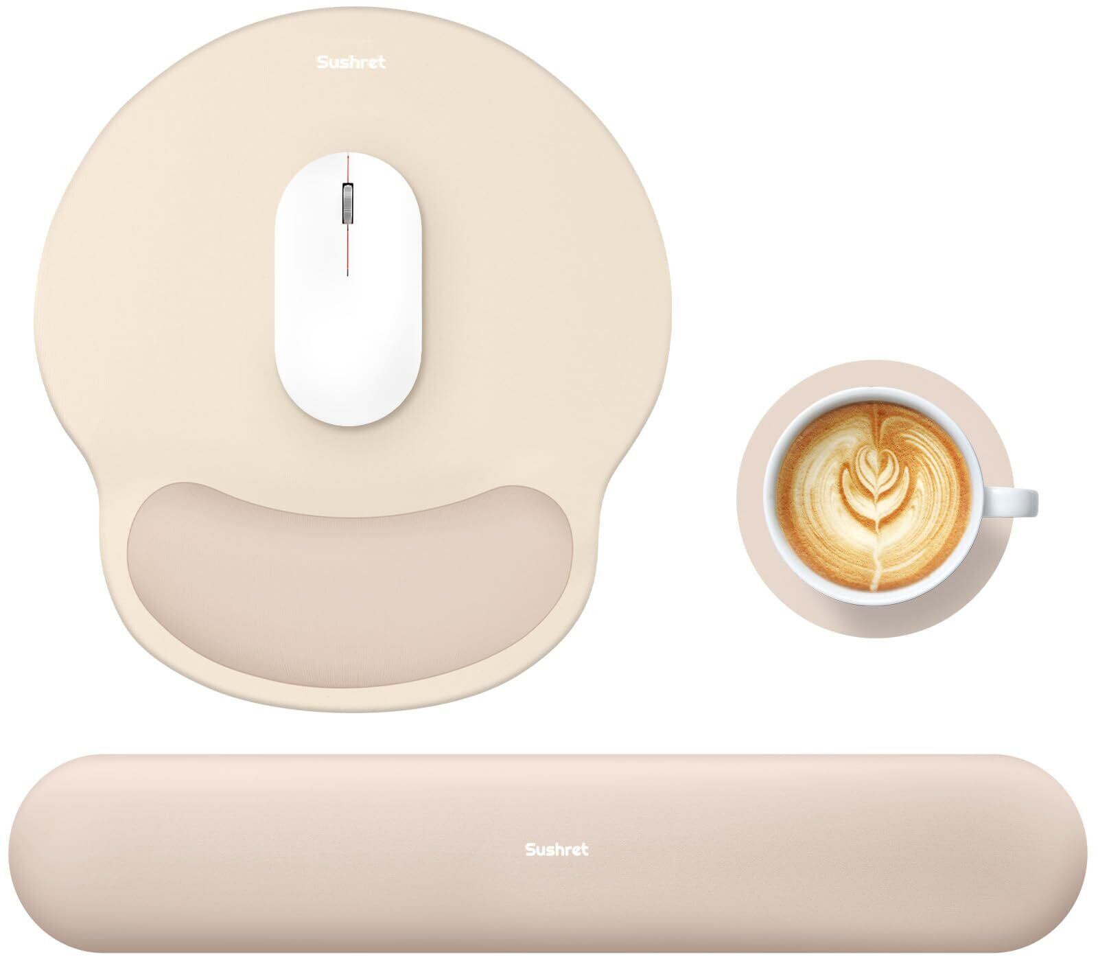 【統一感のある3点セット&かわいいデザイン】キーボード用リストレスト、リストレスト マウスパッド、丸型コースターの3点セット。デスク周りに統一感を与えるかわいいデザインで、在宅ワークやオフィス用はもちろん、ギフトにもおすすめです。