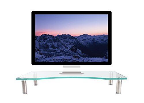 GREEN WEEK グリーンウィーク 厚8mm 強化ガラス PC/TV ディスプレイ モニター 机上台 幅560mm キーボード収納 高さ調整機能