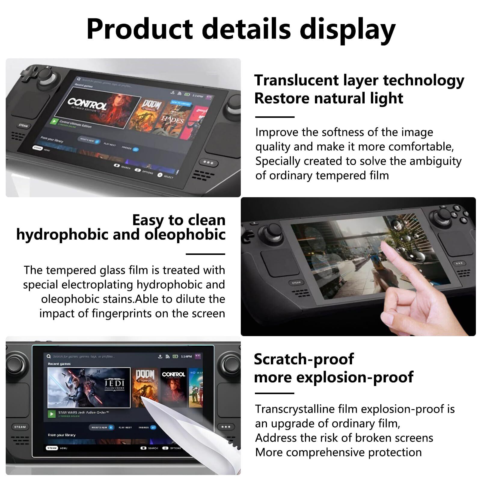 スクリーンプロテクター あてはまる Steam Deck OLED 7.4 インチ (NEW 2023) - 9H 強化ガラスフィルム、アンチスクラッチ HD クリア、牛革ボックスプロフェッショナルパッケージ、2 パック