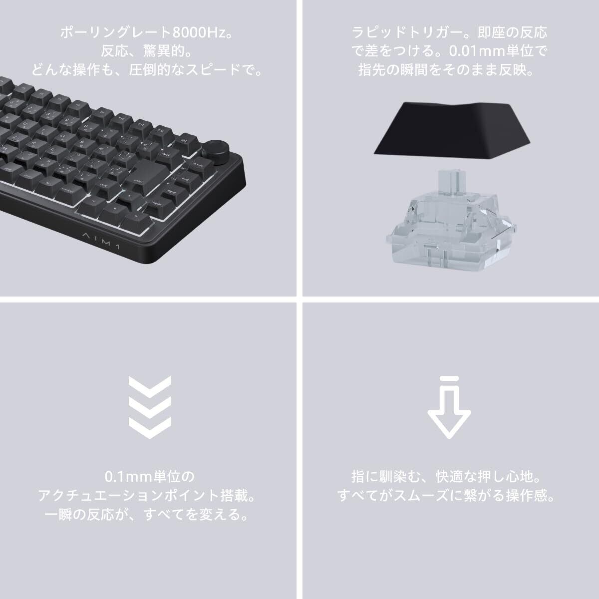 AIM1 瞬 ゲーミングキーボード 日本語配列 キーボード ゲーミング 75%サイズ ポーリングレート8000Hz対応 ラピッドトリガー 0.01mm MATATAKI ブラック
