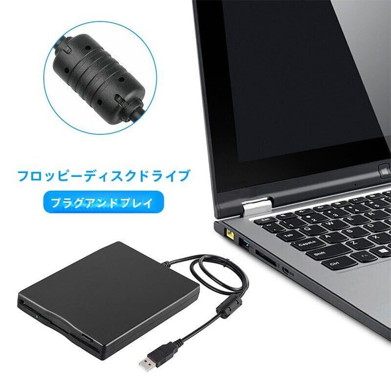 【新着商品】フロッピーディスクリーダードライブ USB外付け 3.5インチ1.44 MB外付けポータブルFDDディスケットドライブWindows XP/Vista/7/8/10/11のみサポート、PCコンピュータ/ラップトップ用 プラグアンドプレイ ドライバなし ブラック