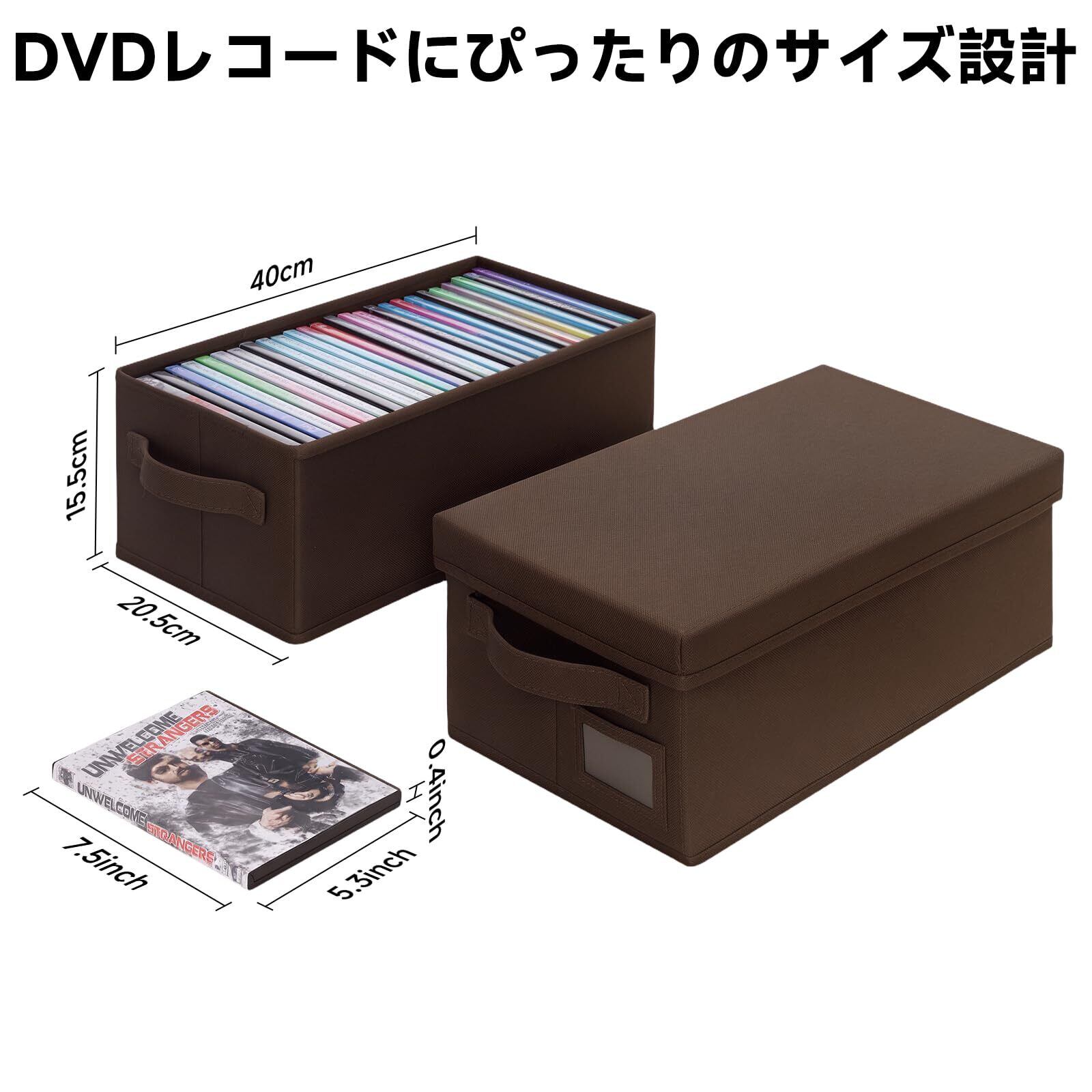 【新着商品】2点セット ブラウン 厚手不織布 DVD 収納ボックス ― 標準 DVD ケース 25枚 収納可・防塵カバー付き & スタッキング対応