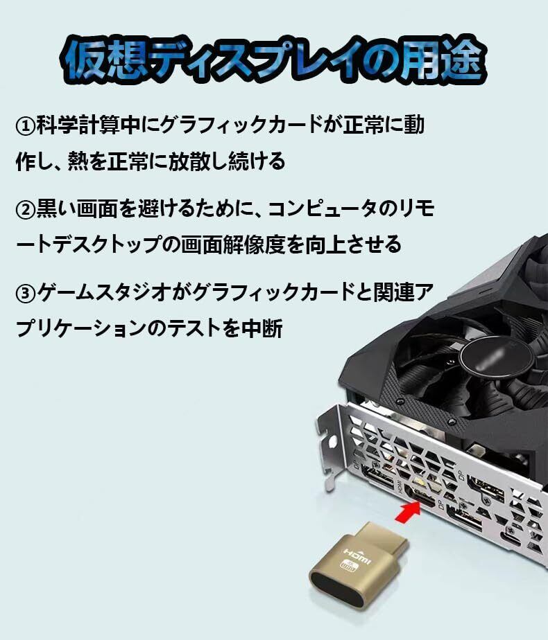 【遠隔作業】:遠隔作業に欠かせないツールです。物理的なディスプレイがなくても、リモートPCを効果的に操作できます。PCリモコン、オンライン会議、プレゼンテーションに最適で、視聴体験を最大限に向上させます。