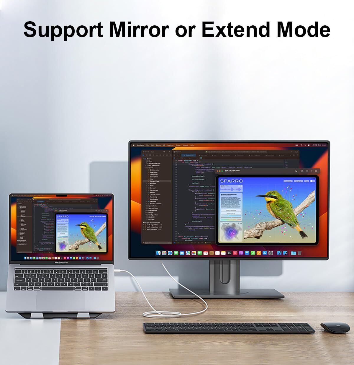 iPhone 15/16/コンピューター/MacBook/iMac/iPad Pro/スマートフォン(アプリ、ビデオ、写真、プレゼンテーション、ウェブサイト、スライドショーなどを含む)の画面をHDMI対応テレビ、モニター、プロジェクターにミラーリング/拡張できます。