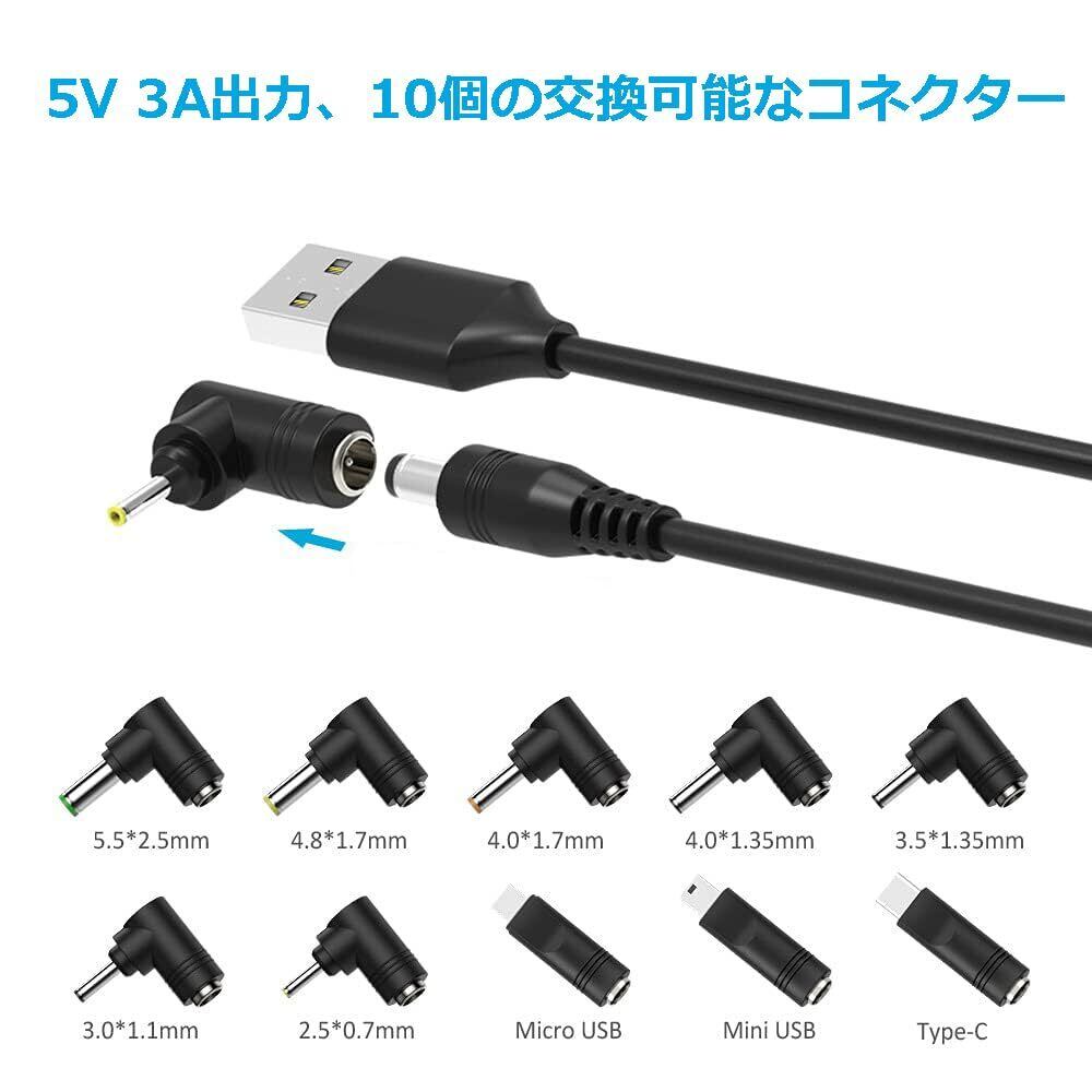 5V 3A usbからdcプラグ変換ケーブル 10種類 セット USB to DCケーブル 1.5m dc 変換コネクタ 外径5.5mm 内径2.1mm DCジャック(5.5x2.5、4.8x1.7、4.0x1.7、4.0*1.35mm、3.5x1.35、3.0x1.1、2.5x0.7、Micro USB、USB C、Mini USB)