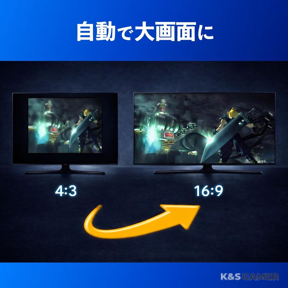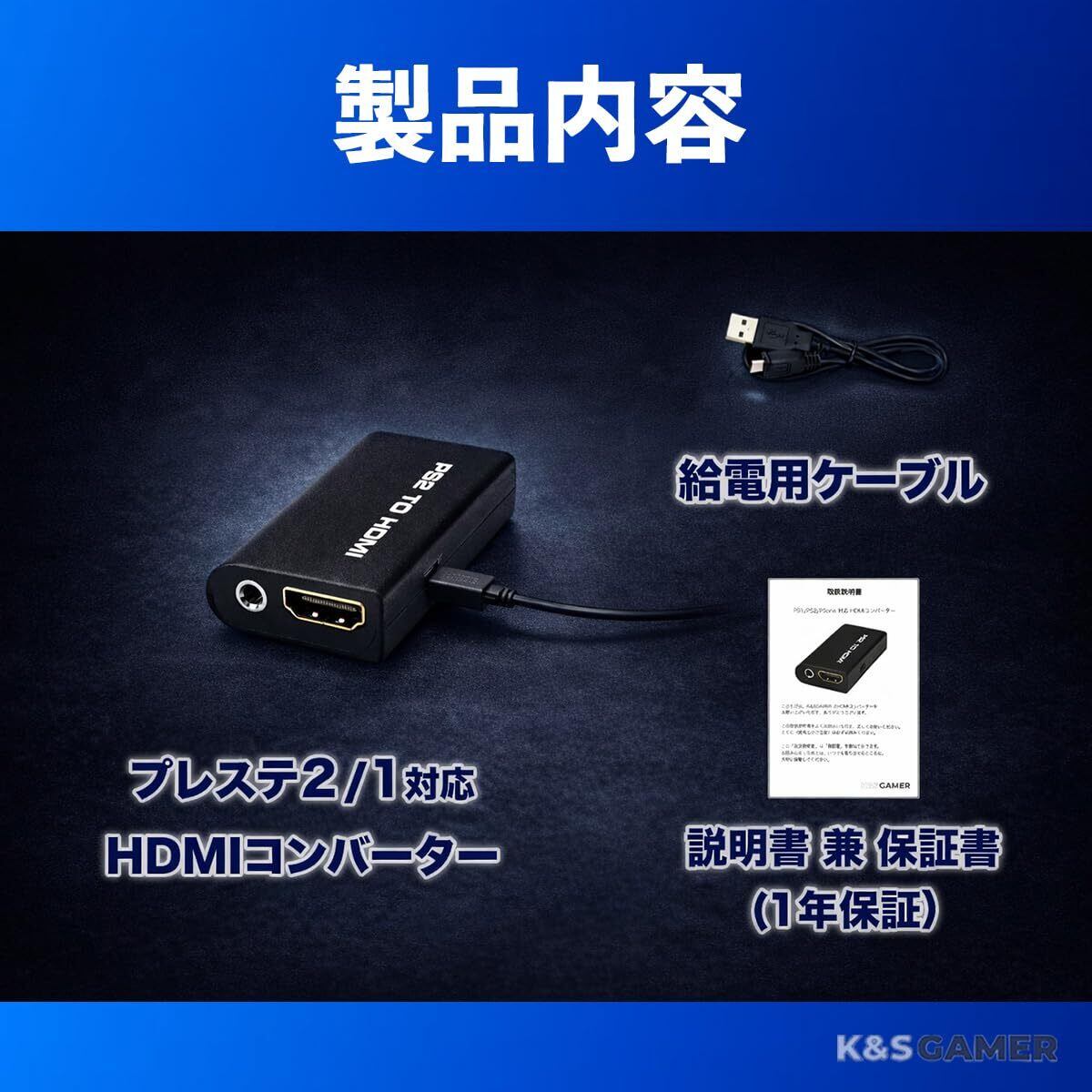 PlayStation2/PlayStation1をHDMI接続で現代のテレビに。 面倒な3色ケーブル不要、差すだけの簡単セットアップ。 4:3映像を自動で16:9に拡大し、大画面で名作を楽しめます。 PS2本体から給電可能で、追加電源は不要。 レトロゲーム環境をスマートにアップデート。