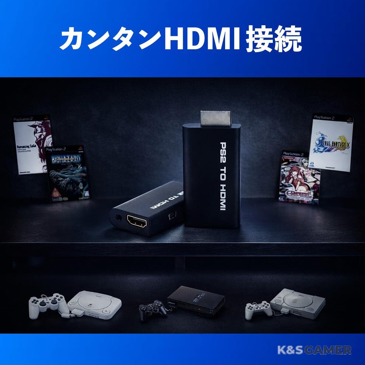 【名作が蘇る】 PS2/PS1 to HDMI 変換アダプター 簡単HDMI接続 自動16:9対応