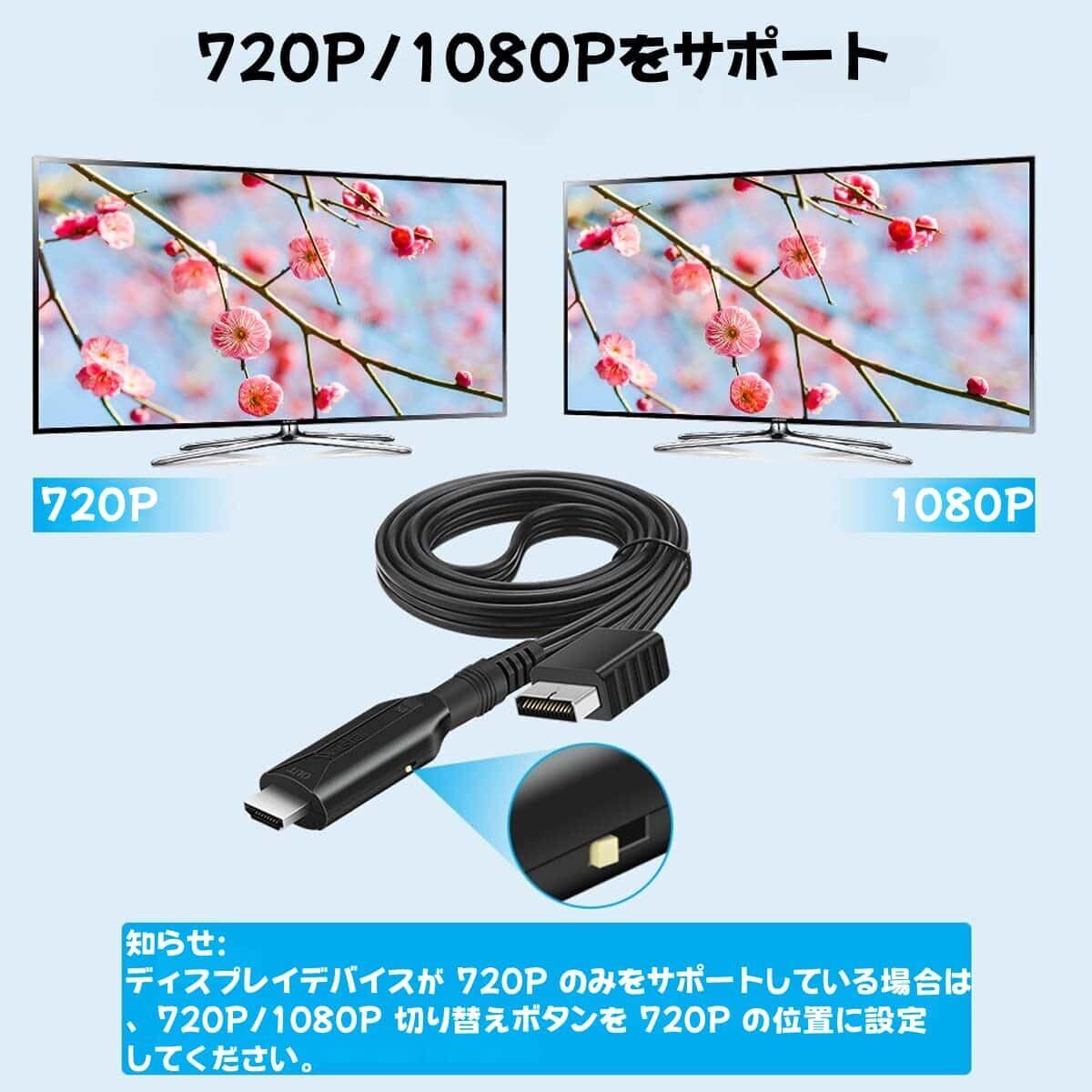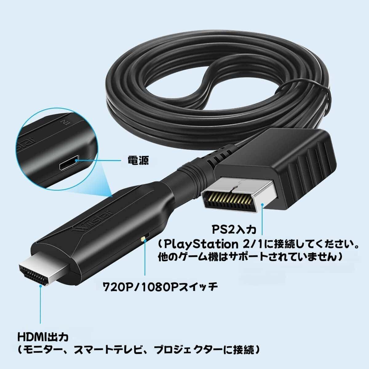 PS2 HDMI 変換アダプター プレステ 2 HDMI に対応した 1080P/720P 画質向上 HDTV ケーブルで、ソニー プレイステーション 1/2/本体に対応し、S/ビデオ信号出力付き(画質 100% 向上、ケーブル長 1M)