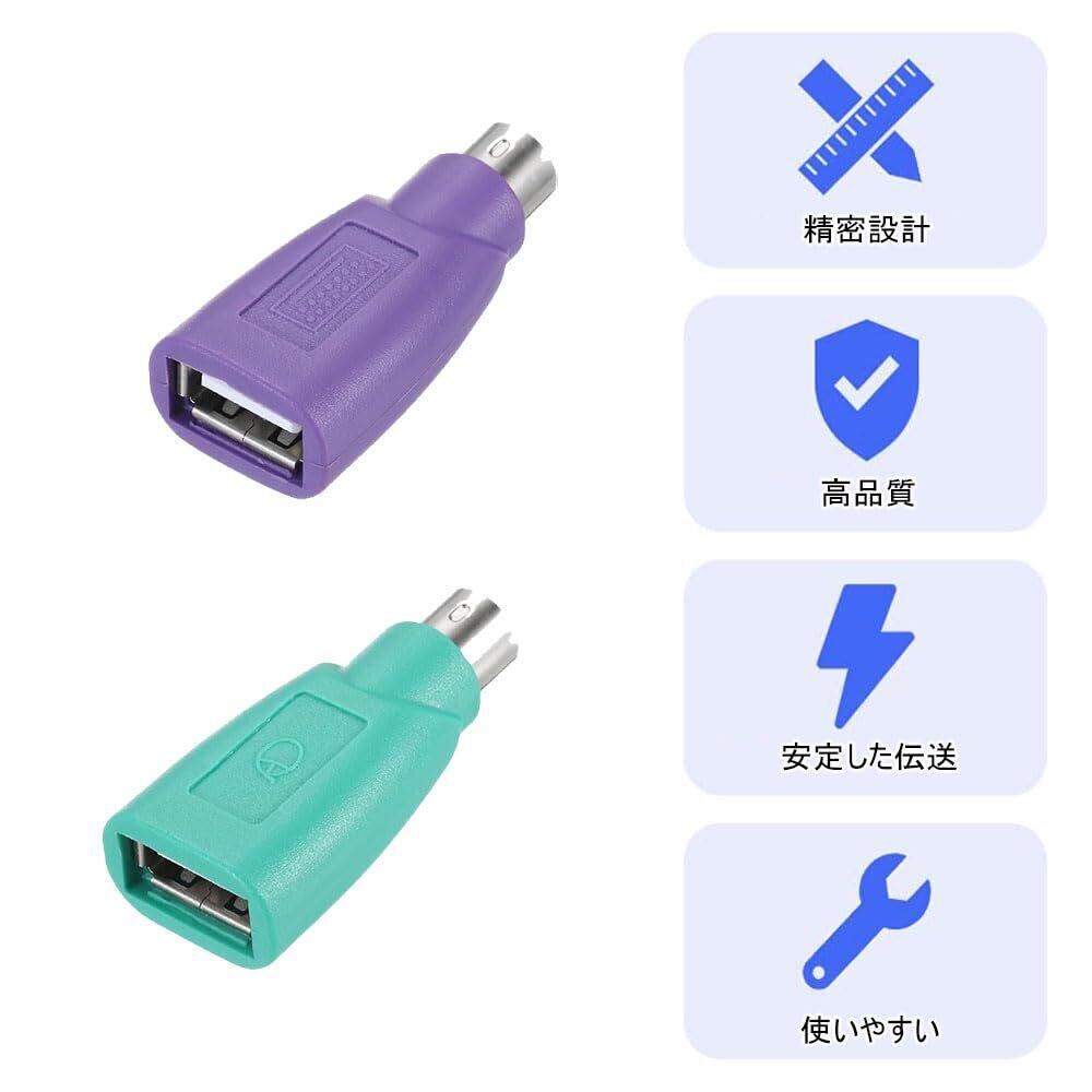 【2022最新】DFsucces PS 2-USBコネクタ 4個入り キーボード/マウスコンバーター USB-変換アダプタ(メス-オス)交換用PS-2 キーボード パープル+グリーン
