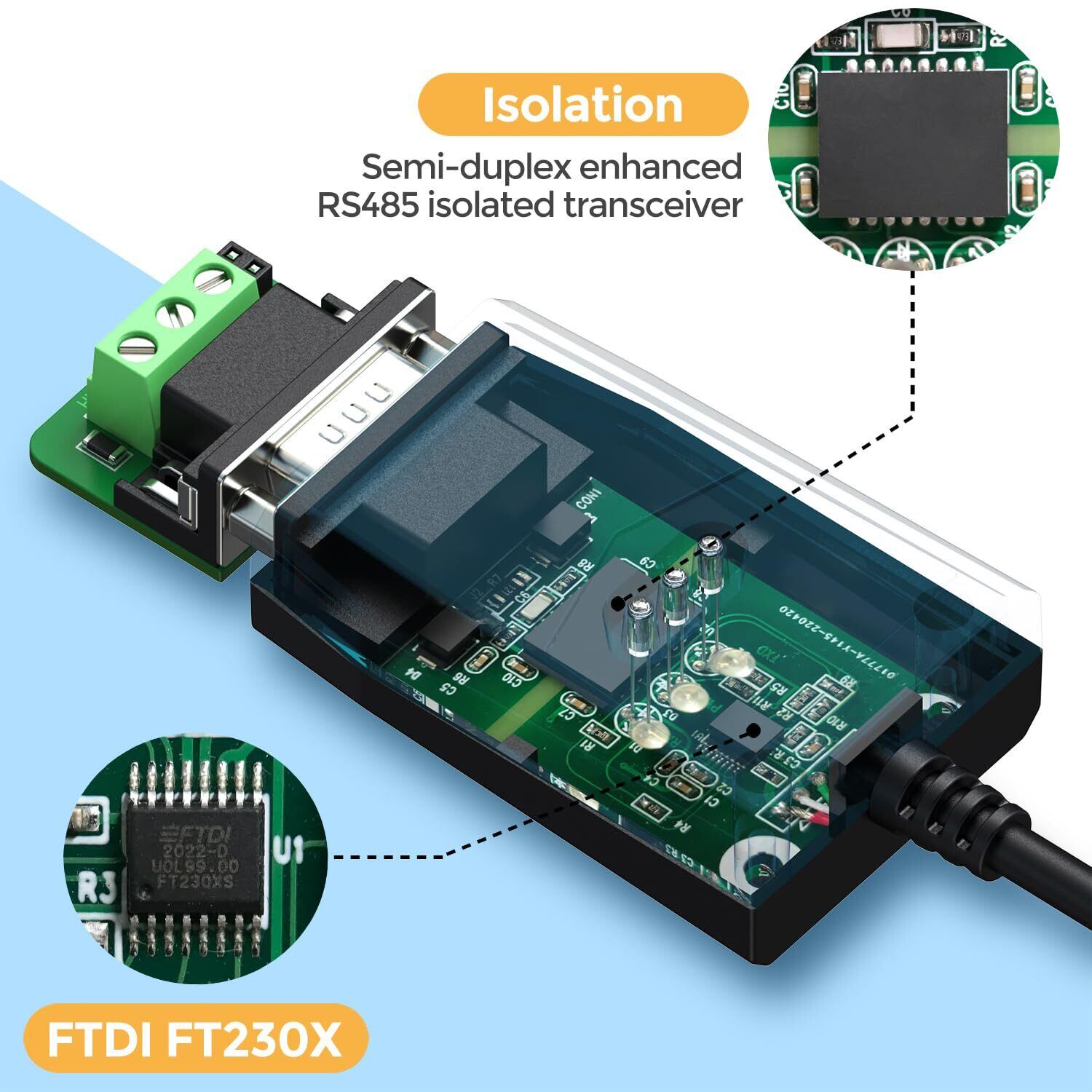 【優れたチップセット】オンボードでFTDIチップおよび半二重強化型絶縁RS485トランシーバーを搭載。