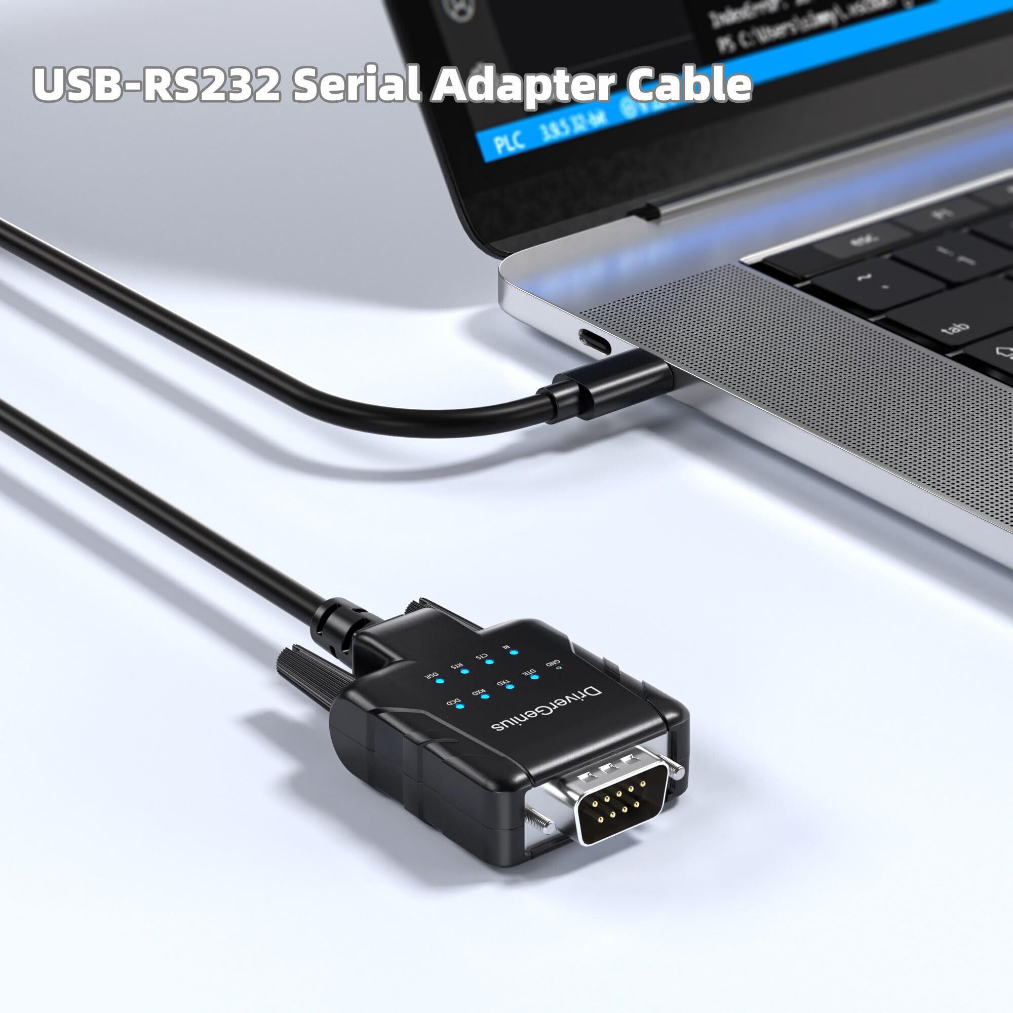 DriverGenius SerialPulseX シリーズ USB-C - RS232 シリアル 変換アダプタ|Serialコンバーターケーブル|9 x データ監視 LED 付き|Windows 11・macOS 15対応|産業用 1ポート|オス-オス|USB232A-E-C