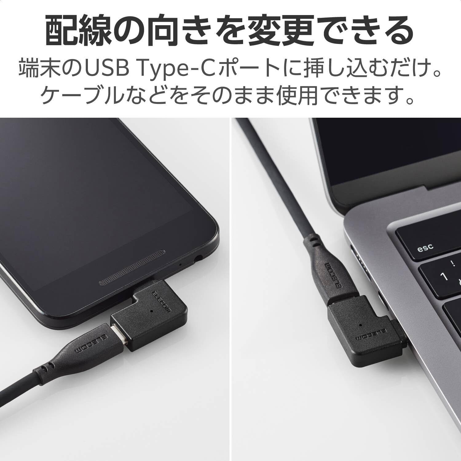 【新着商品】エレコム Type-C アダプタ L字 横向き USB-C to C 変換コネクタ USB3.2(Gen2) 10Gbps 60w ブラック AD-CFCML01BK