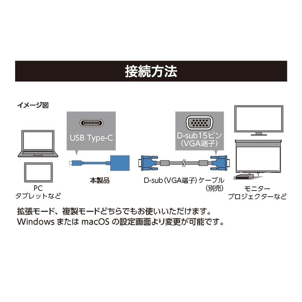 ●コネクタ:USB Type-C端子 - D-sub15ピン(VGA端子)