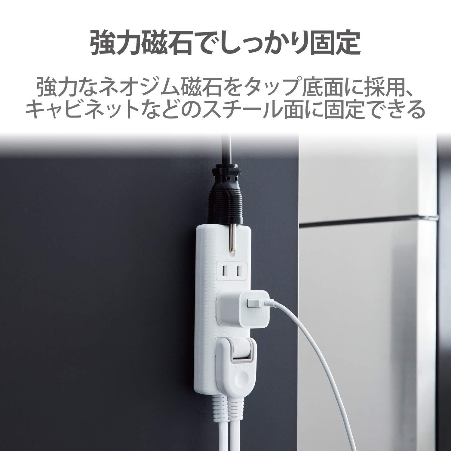 エレコム 電源タップ マグネット 1m 4個口(内3ピン1) ホワイト T-KM01-2410WH