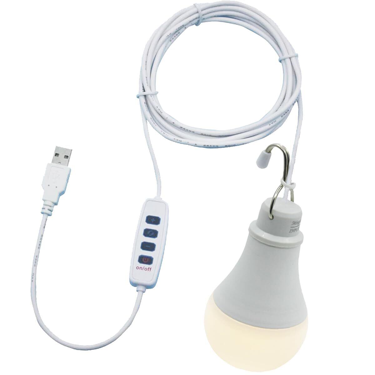 USB電球LED 無段階調光+3色温モード 高辉度 7W 電球色 昼光色 昼白色 省エネ 吊り下げ USB給電 アウトドア照明 キャンプ照明 車中泊ライト BBQ 夜釣り 災害停電ライト