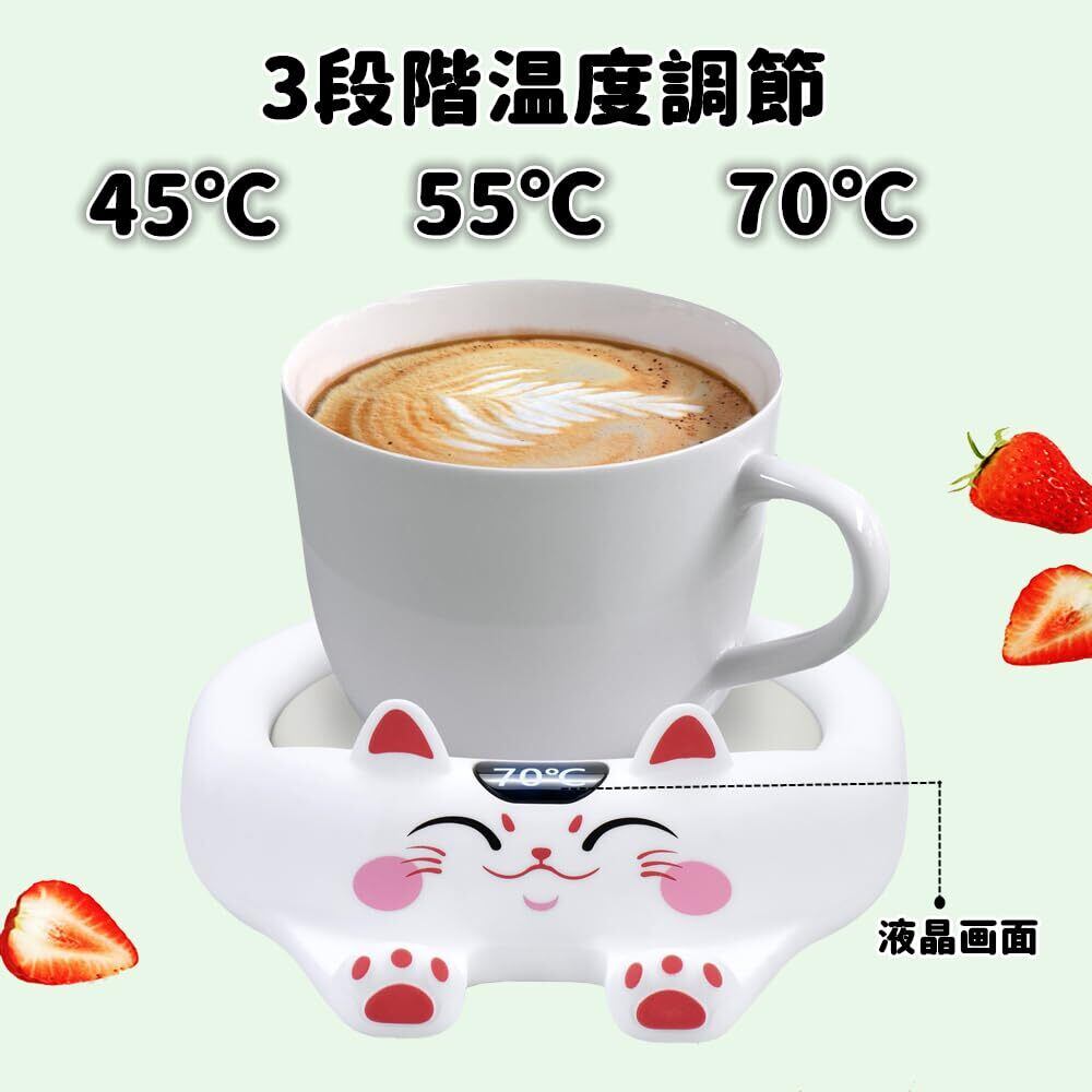 猫模様 カップウォーマー コーヒーカップウォーマー 保温コスター オフィスウォーマー 3段階温度調節 45℃~70℃ スマホスタンド機能付き 自動電源OFF ドリングウォーマー マグカップウォーマー 可愛い 液晶画面 クリスマス プレゼント (ホワイト)