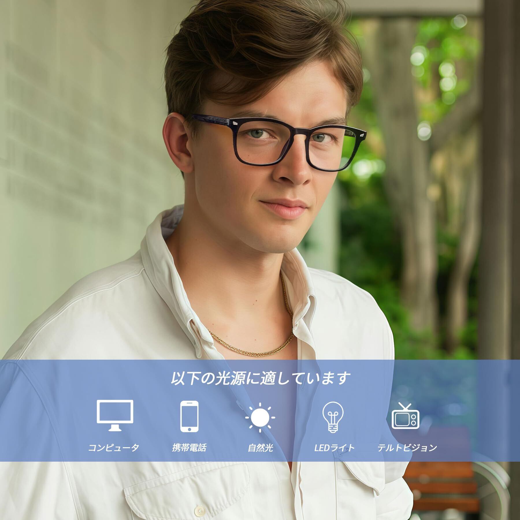 【様々なシーンに適用できる】PC メガネは、長時間エレクトロニックディスプレイに接触する様々な状況、例えばオフィスでの仕事、勉強、ゲームや映画を見る際などに適しています、外出時のファッションアイテムとしても使うことができます。室内でコンピュータを使って仕事をしているときも、屋外でスマートフォンを使っているときも、目に全方位の保護を提供します