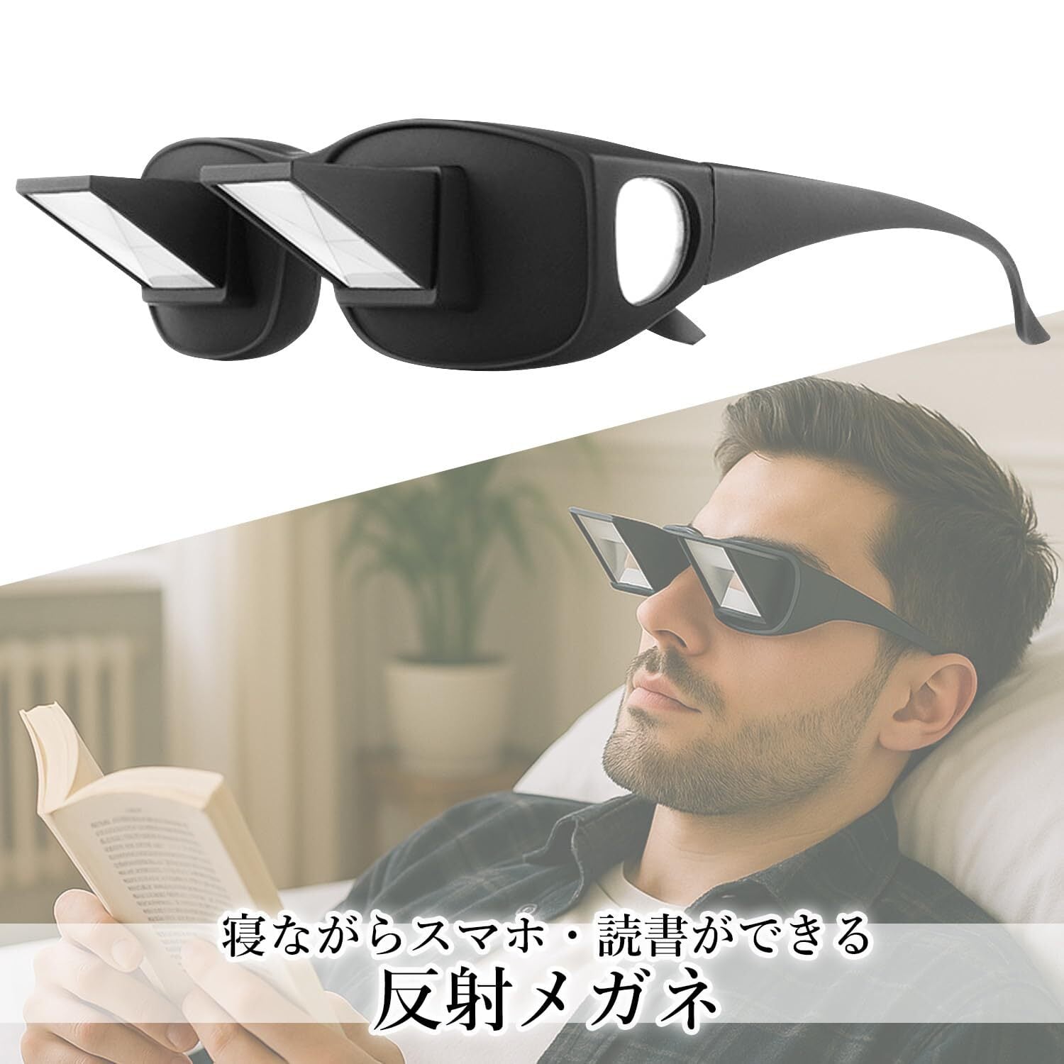 寝ながら スマホ TV 読書 ができる 寝たまま メガネ プリズム 反射メガネ 仰向け (ブラック)