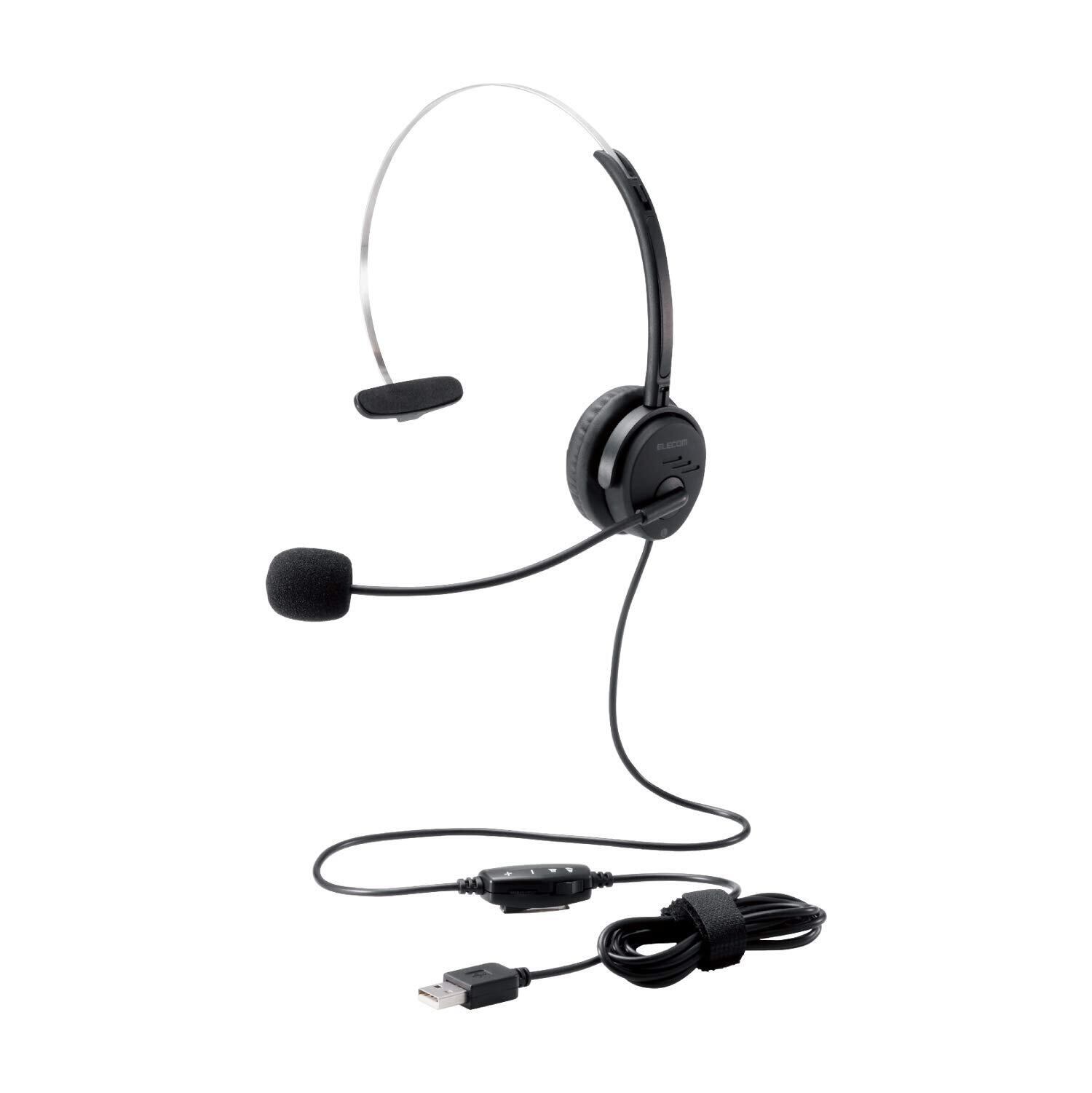 エレコム(ELECOM) ヘッドセット USB オーバーヘッド 有線 片耳 30mmドライバ ブラック HS-HP29UBK