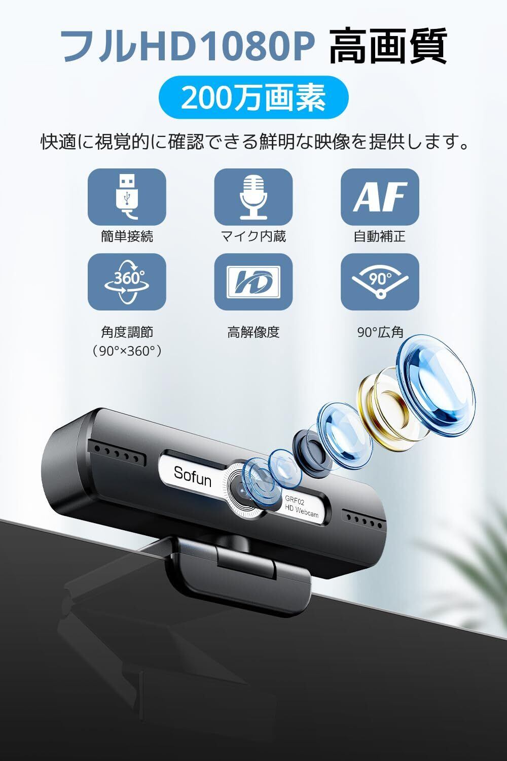 【フルHD 1080P・200万画素の高画質映像】本 ウェブカメラ は、 フルHD 1080P 対応& 200万画素 の 高精細 な映像を実現。 オンライン会議 や ビデオ通話 、 Zoom 、 Skype 、 Teams などに最適な WEBカメラ です。なめらかでクリアな映像で、 在宅勤務 や テレワーク をより快適にサポートする webカメラ 60fps です。