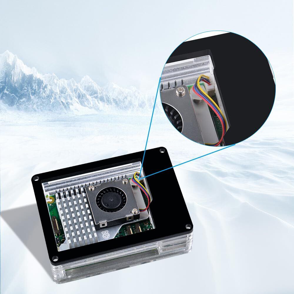 GeeekPi アクリルケース 公式、Raspberry Pi 5 4GB/8GB 用 PWM ファンとヒートシンク付き Raspberry Pi 5 アクリルケース (公式 Pi 5 アクティブクーラー付属)(clear acrylic and case)
