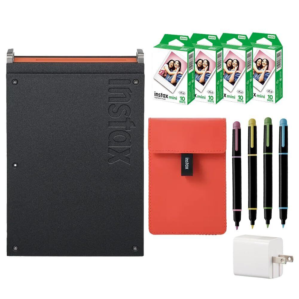 【2022最新】富士フイルム チェキ スマホプリンター INS MINI LINK PLUS B instax mini Link+ USBアダプタ デコペン フィルム40枚 専用ケース 付5点セット