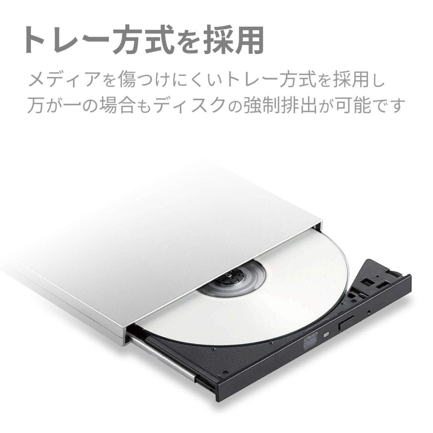 ディスクの出し入れは、トレー方式を採用することで、ディスク表面とドライブ入口が物理的に擦れることなく、ディスクを出し入れすることが出来るため、大切なメディアにキズを付ける事なく使用する事ができます。