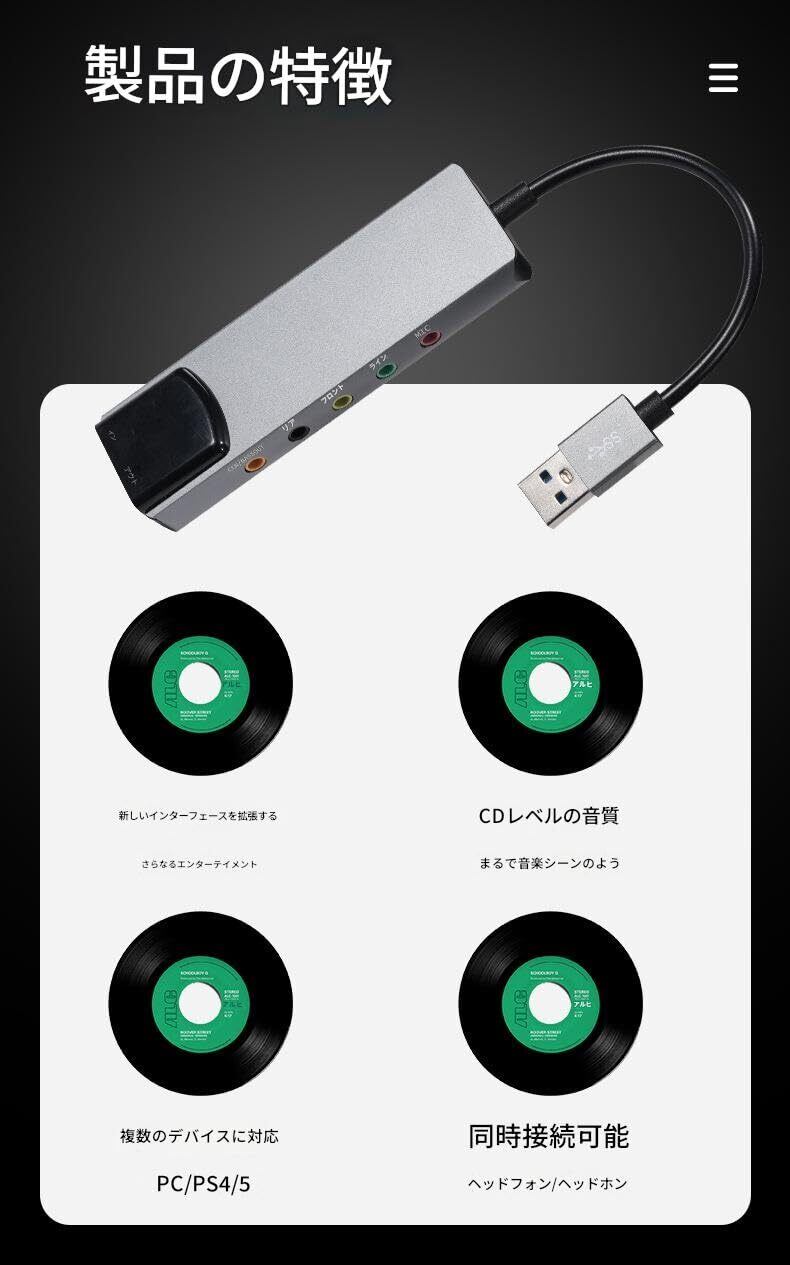 USB サウンド カードと外部サウンド カードでは、ミキシング機能、プロフェッショナル 5.1 チャンネル出力と光 SPDIF 出力、PC + サウンド カード + アンプ、5.1 スピーカーをサポートするためにドライバーをインストールする必要があります。
