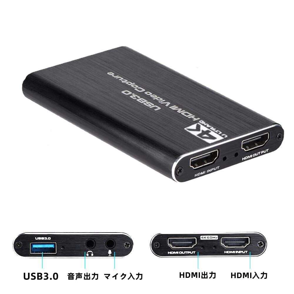 YFFSFDC 4K HDMI キャプチャーボード パススルー 60FPS USB3.0 ゲームキャプチャー 60Hz ビデオ フルHD ビデオキャプチャー ゲーム実況 生配信 会議 ライブビデオ配信 画面共有 録画 医用撮像 PS5 PS4 Xbox Wiiu Nintendo Switch Webカメラ スマホに対応 OBS/Potplayer適用 Mac/Windows/Linux OS対応
