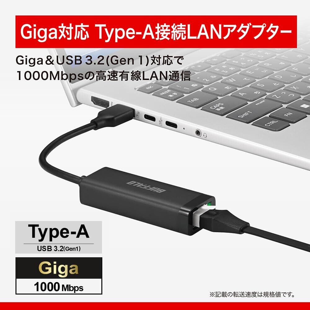 【限定】バッファロー 有線LANアダプター Giga Type-A USB3.2(Gen1)対応 日本メーカー 【 Windows/macOS/Nintendo Switch™ 動作確認済み 】 ブラック LUA6-U3-AGTE-NBK