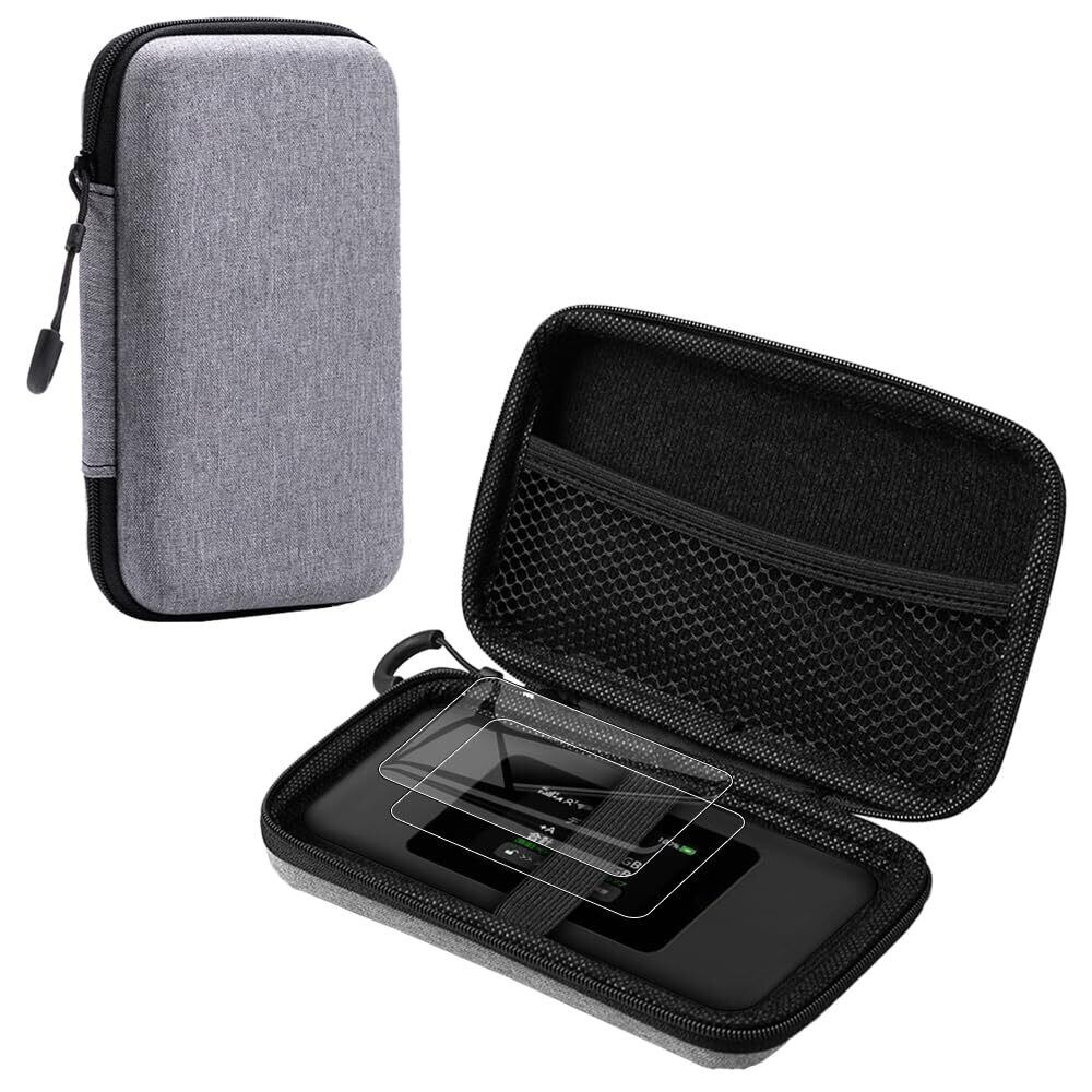 For au/UQ Speed Wi-Fi 5G 01 用収納 ケース+2*液晶画面保護 フィルム [YEZHU] 超耐衝撃 耐摩・防塵・防水設計高密度EVA 軽量コンパクト 旅行/日常用 (グレー)