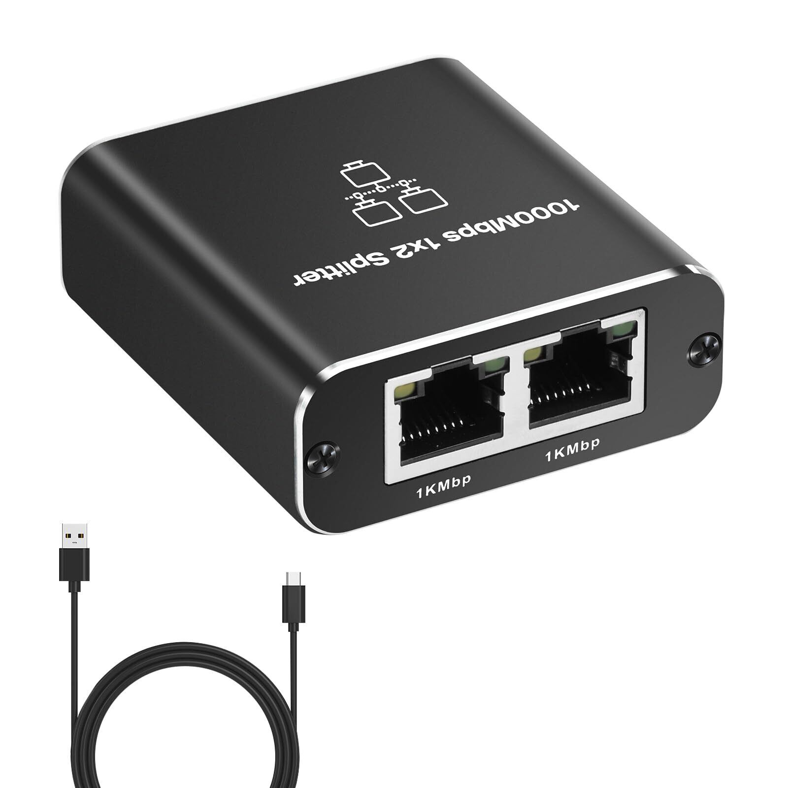 Aideepen LAN ハブ LAN分配器 3ポート 1入力2出力 RJ45 高速1000Mbps スイッチングハブLANケーブル LANケーブル 分岐 2台同時使用 lan スプリッターCat8/Cat7/Cat6対応 ネットワーク拡張 ブラック