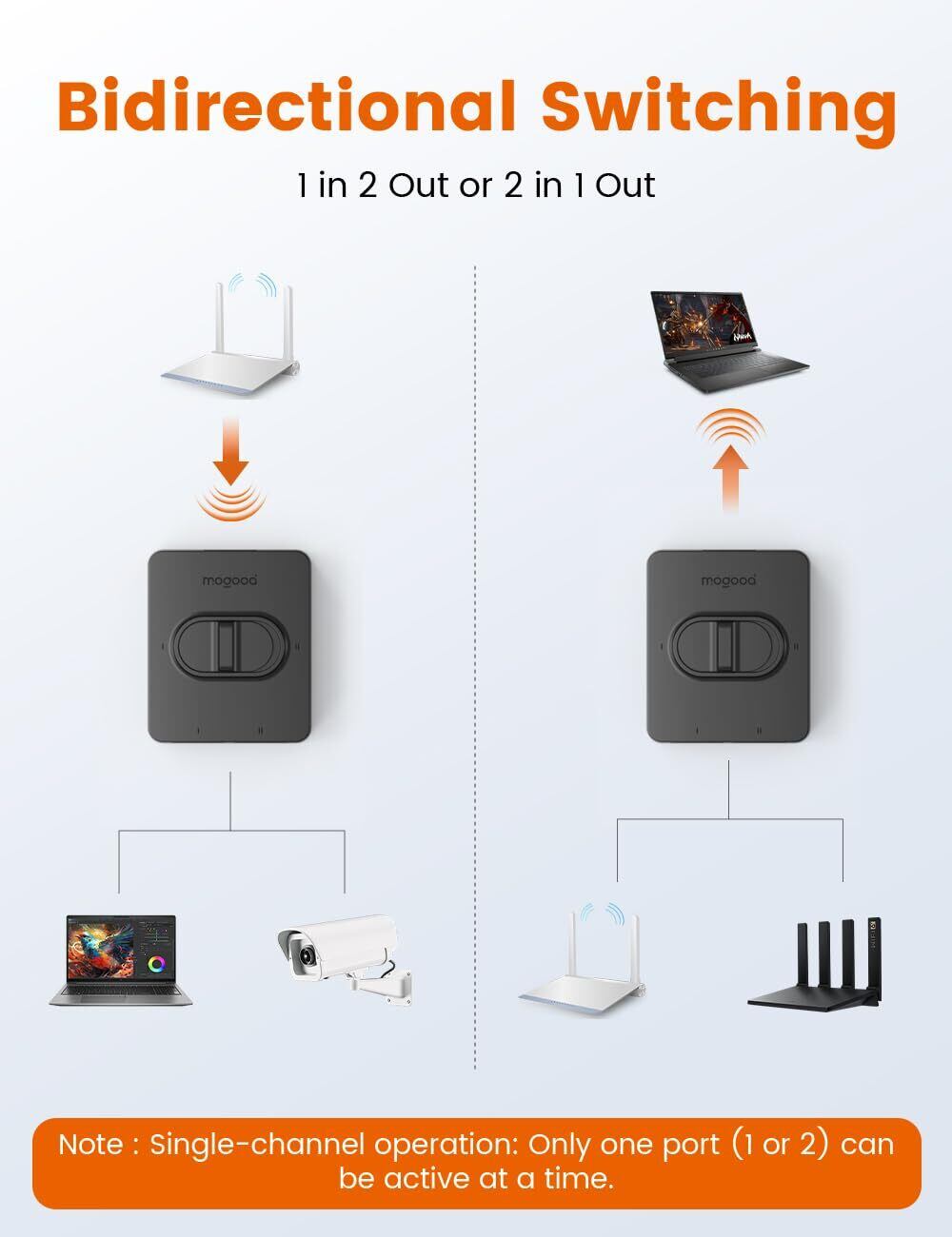 MOGOOD 2ポート lan 分配器 1000Mbps スライドスイッチ 双方向1入力2出力ネットワークスプリッタ、スイッチングハブ、プラグアンドプレイ、電源不要、物理ポート絶縁 高速互換性のあるノートパソコン、PC、ルータ、Cat 5/5 e/6ケーブル