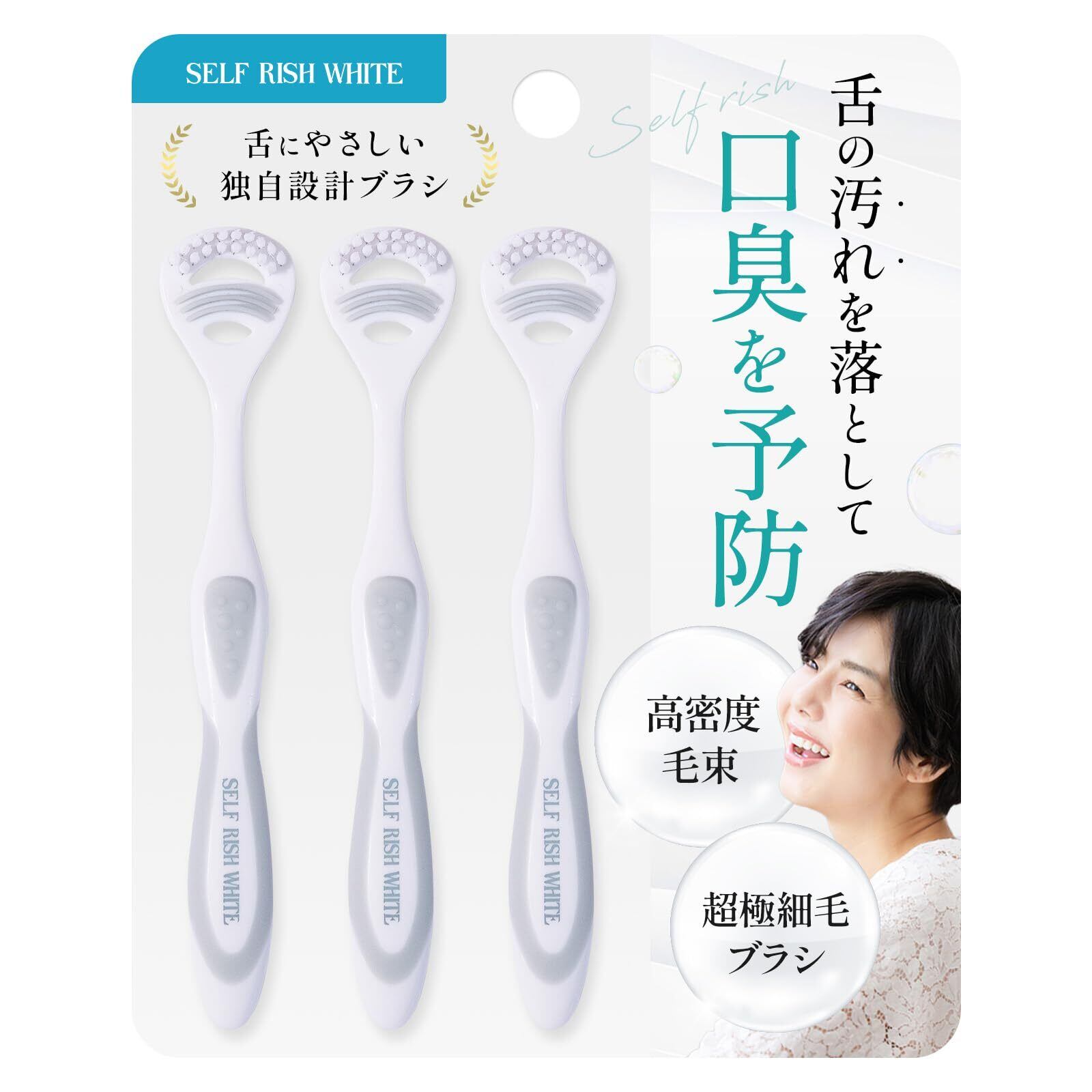 SELF RISH WHITE(セルフリッシュホワイト) 舌磨きブラシ 3本セット 舌クリーナー 舌苔 除去 舌汚れ 口臭予防 オーラルケア