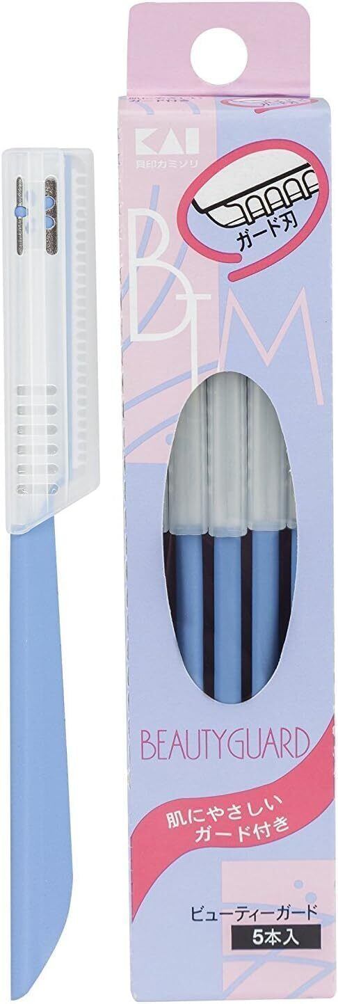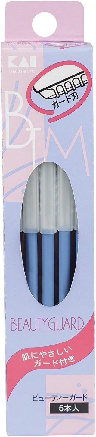 貝印 ステンレス鋼 ビューティーガード 5本入り BTMG-5F #ガード付ステンレス刃のロングセラーL型カミソリ × 2個 ブルー